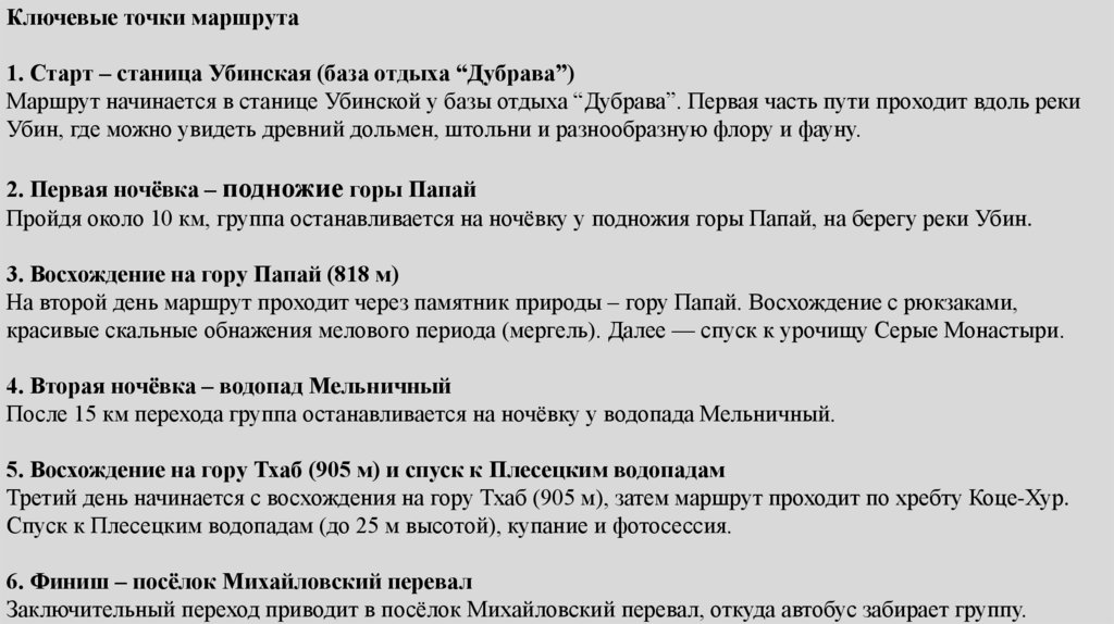 Ключевые точки маршрута1. Старт – станица Убинская (база отдыха “Дубрава”)