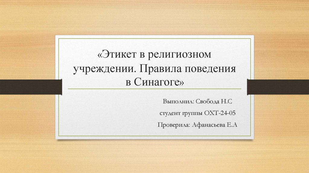 «Этикет в религиозномучреждении. Правила поведения