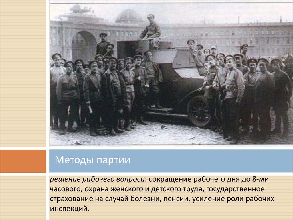 Методы партиирешение рабочего вопроса: сокращение рабочего дня до 8-ми