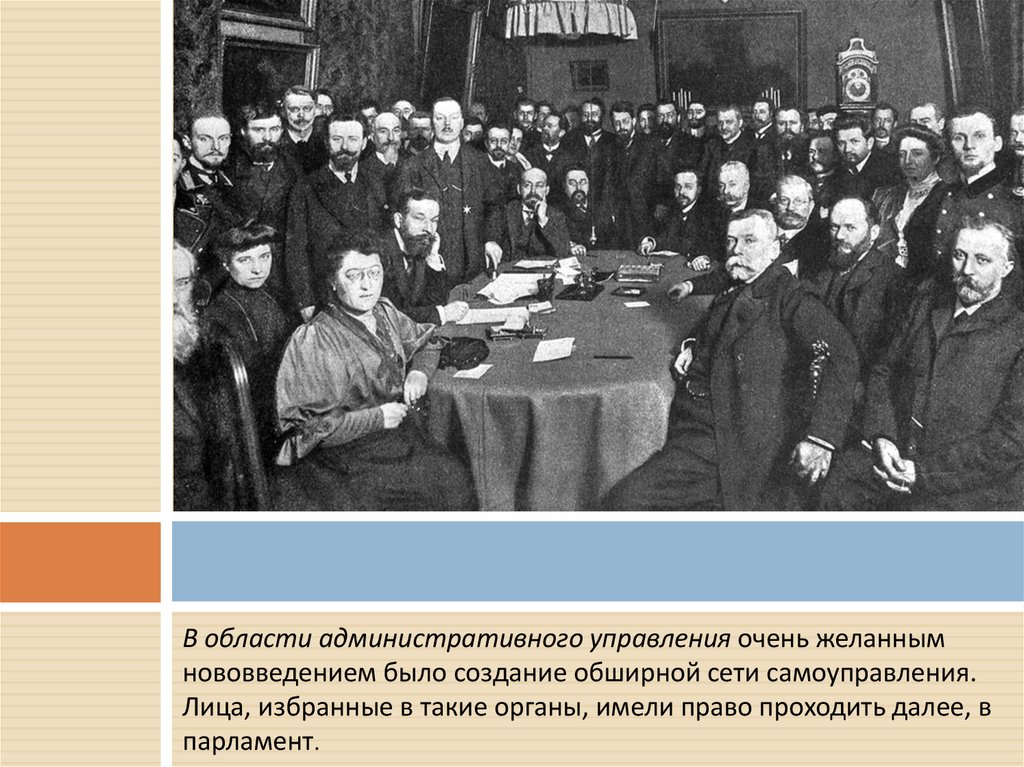 В области административного управления очень желаннымнововведением было создание обширной сети самоуправления.