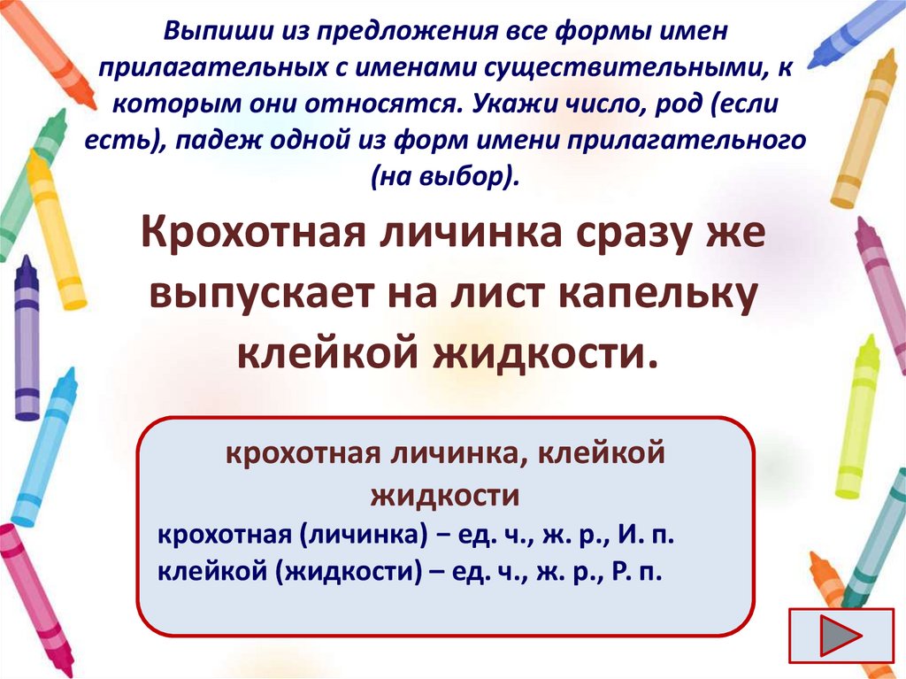 крохотная (личинка) − ед. ч., ж. р., И. п.