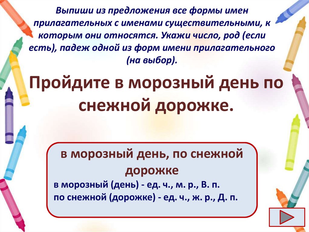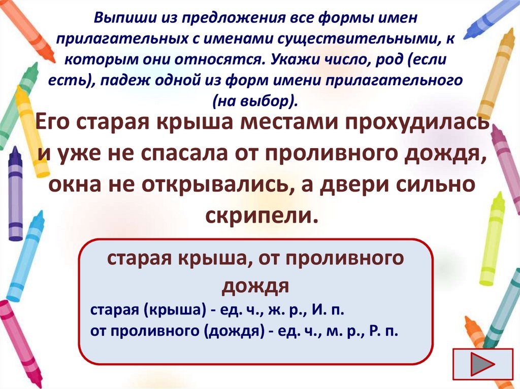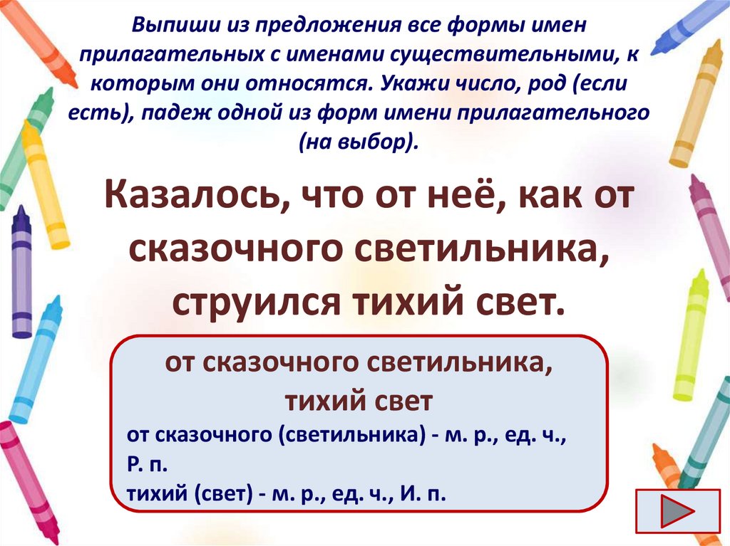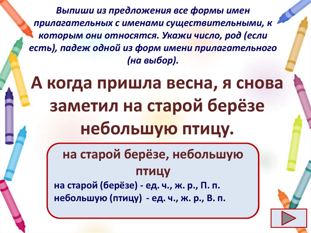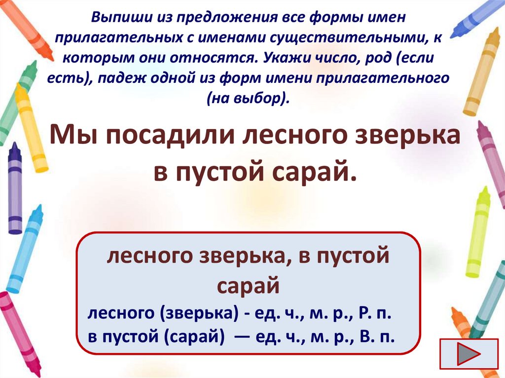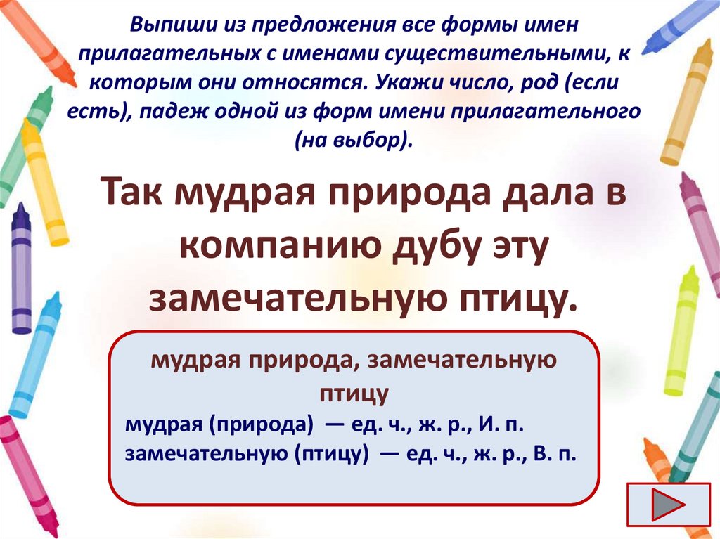 Выпиши из предложения все формы именприлагательных с именами существительными, к