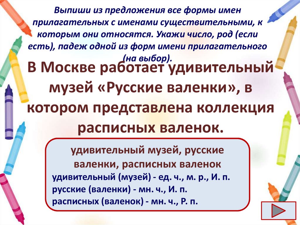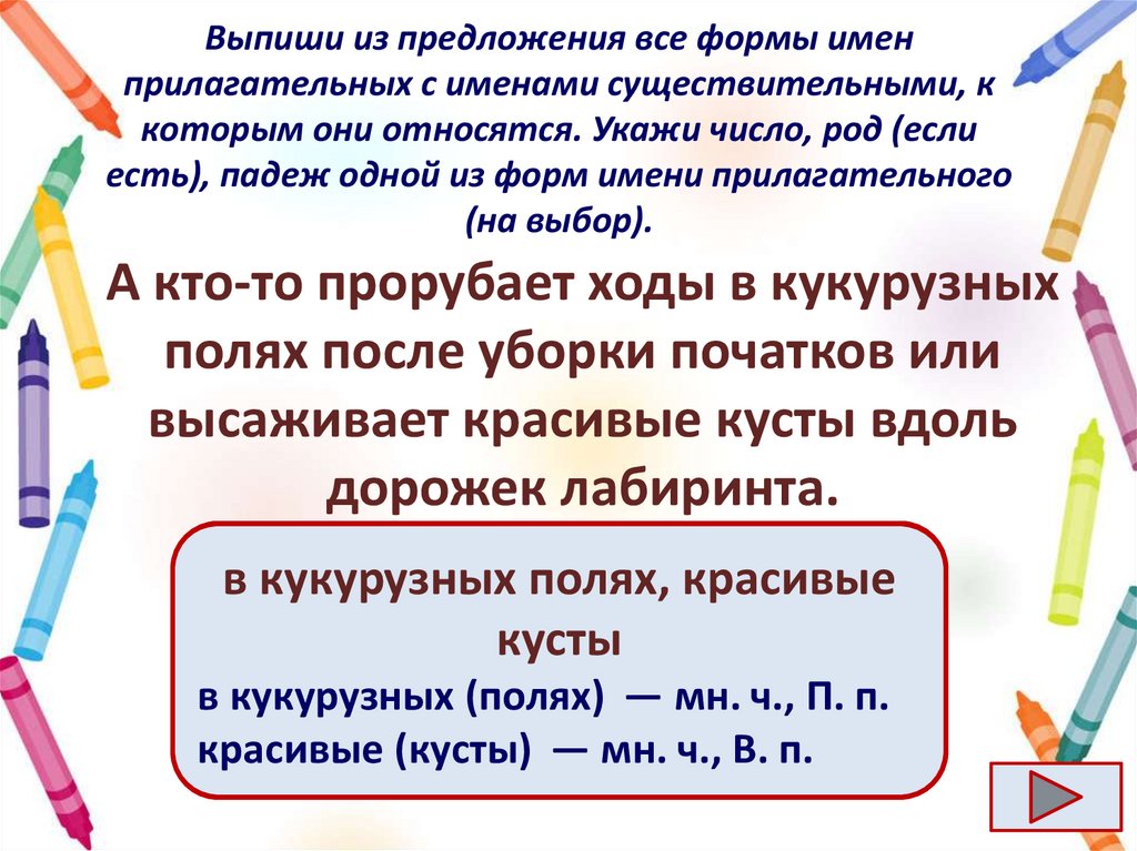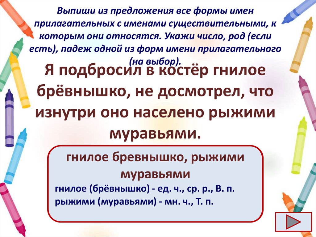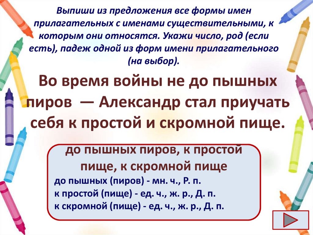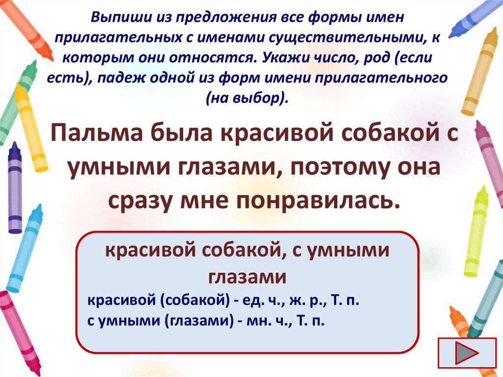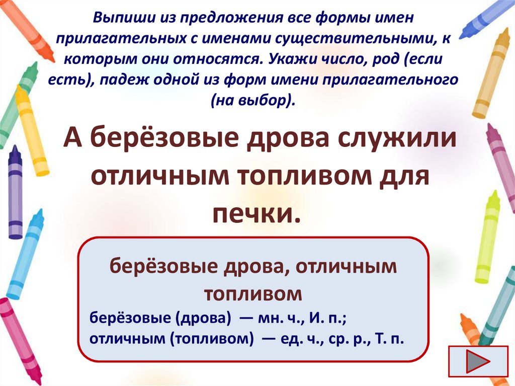Выпиши из предложения все формы именприлагательных с именами существительными, к