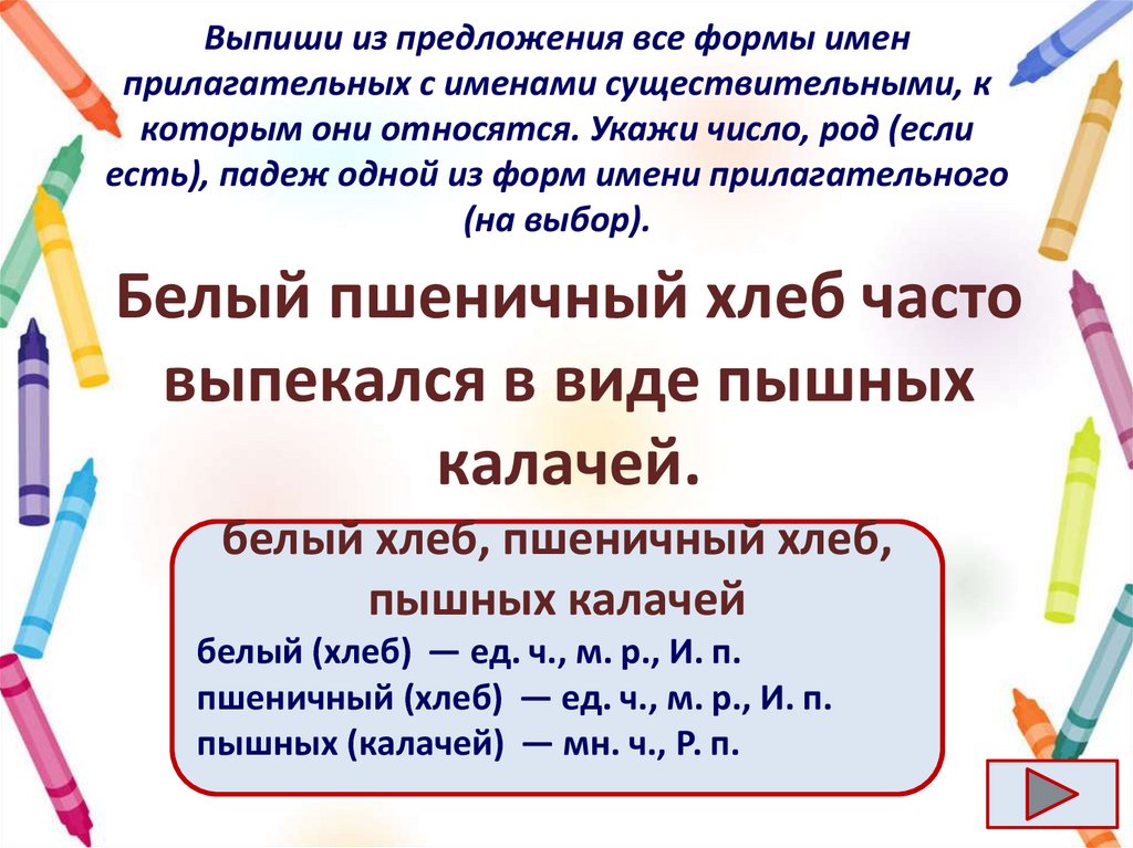 пшеничный (хлеб) — ед. ч., м. р., И. п.