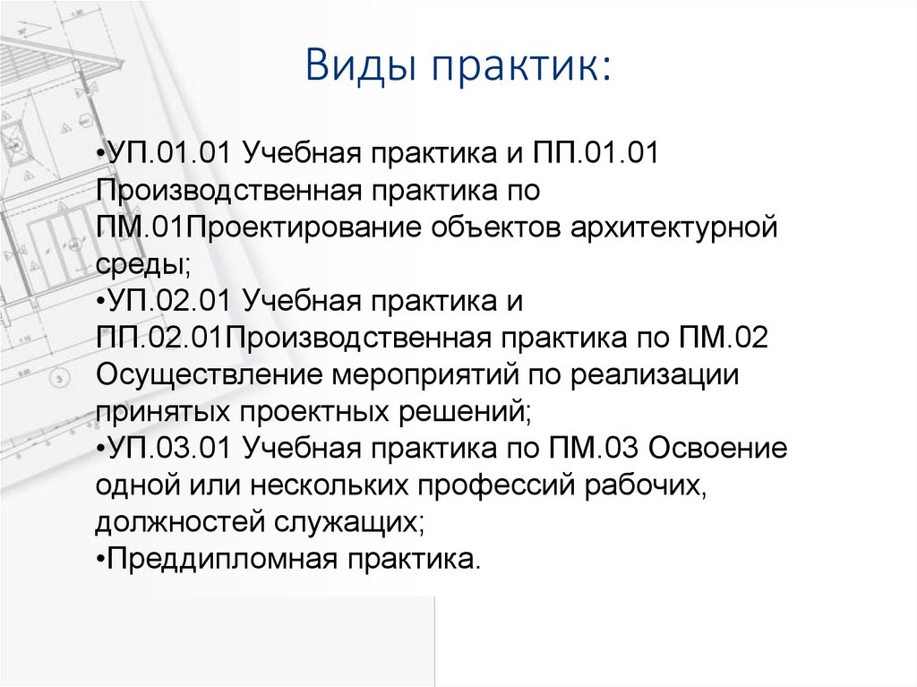 отраслям) и 07.02.01 Архитектура (по данным специальностям