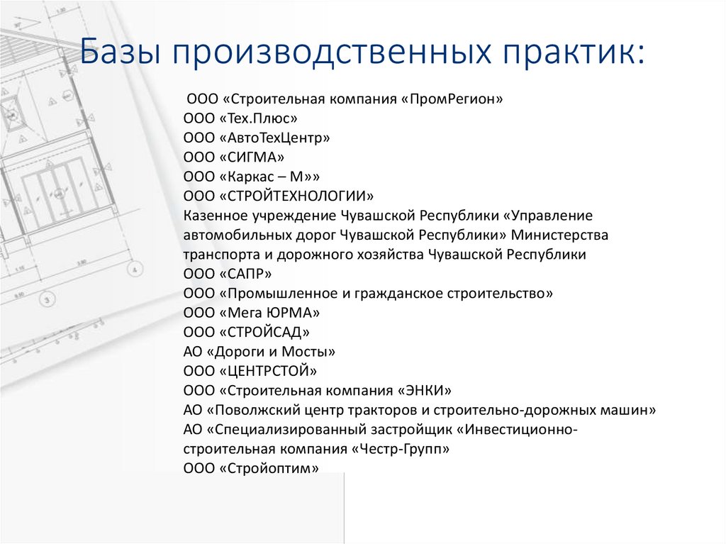 Базы производственных практик:ООО «Строительная компания «ПромРегион»