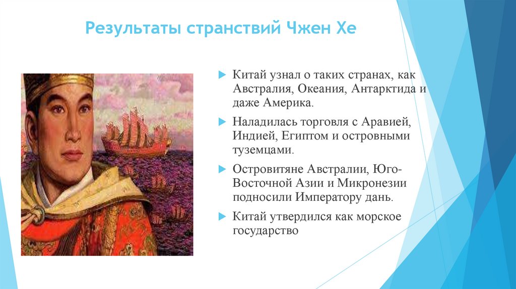 Результаты странствий Чжен ХеКитай узнал о таких странах, как