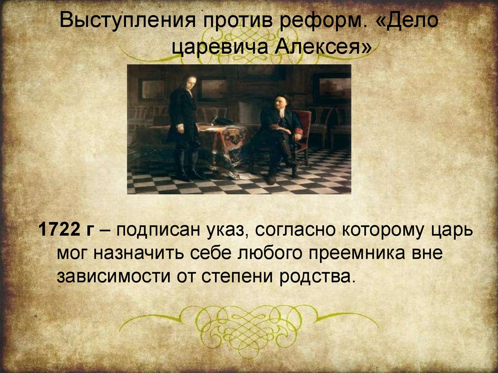 1722 г – подписан указ, согласно которому царьмог назначить себе любого преемника вне