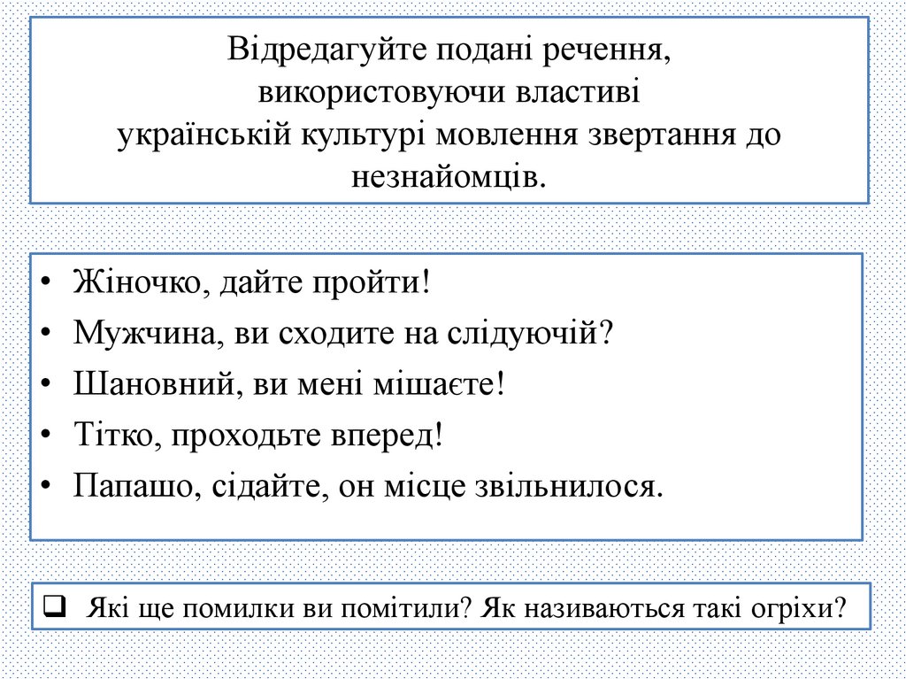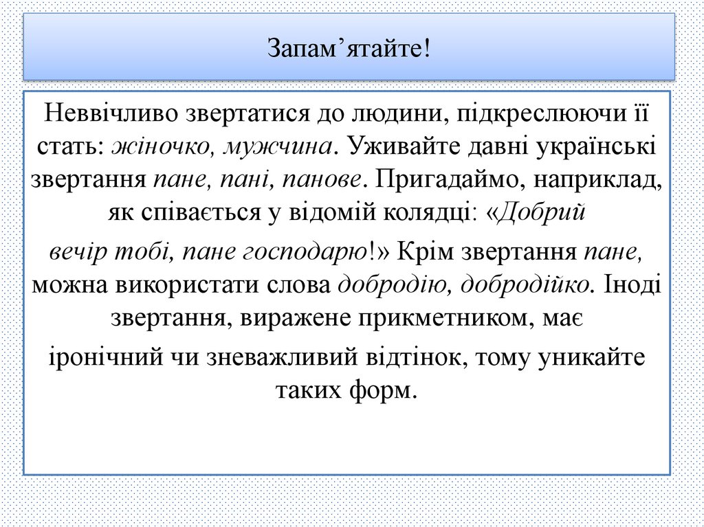 Запам’ятайте!Неввічливо звертатися до людини, підкреслюючи її