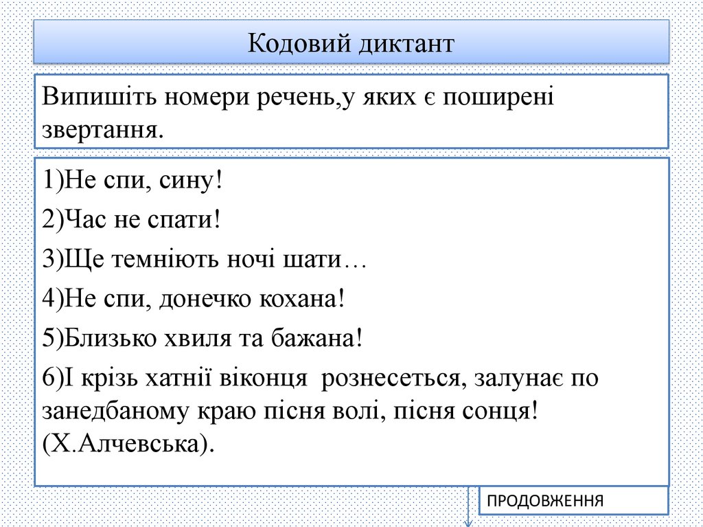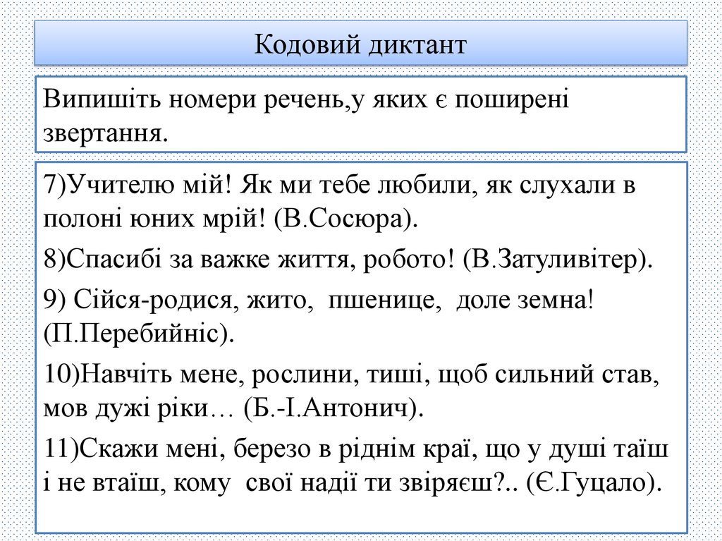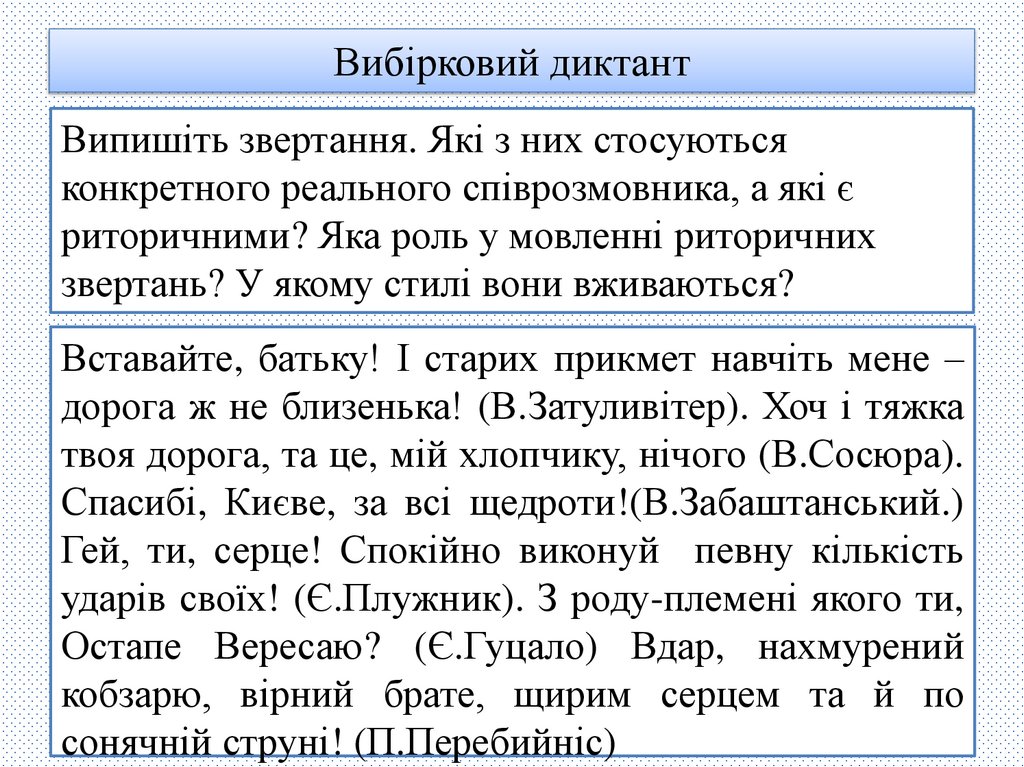 Вибірковий диктантВипишіть звертання. Які з них стосуються