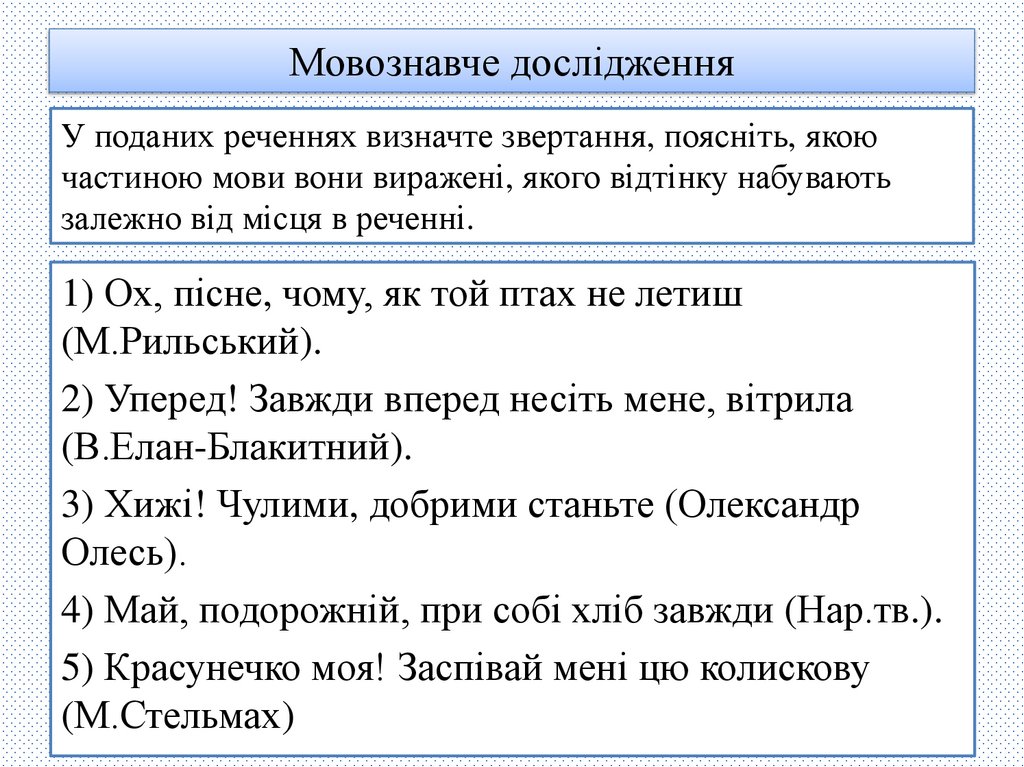 Мовознавче дослідженняУ поданих реченнях визначте звертання, поясніть, якою