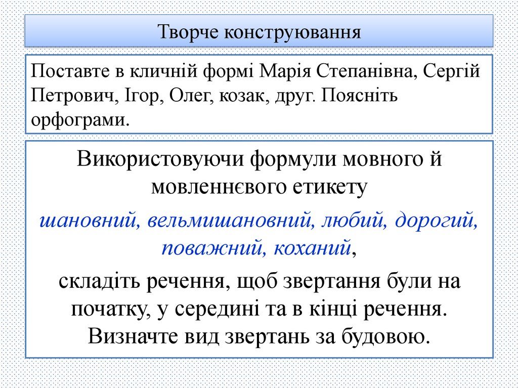 Творче конструюванняПоставте в кличній формі Марія Степанівна, Сергій