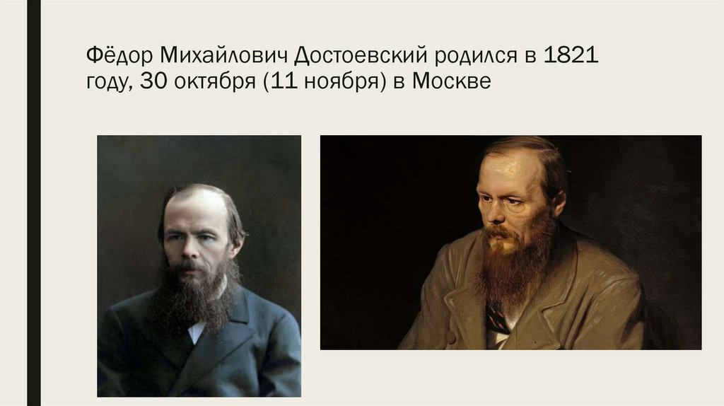 2. Фёдор Михайлович Достоевский родился в 1821 году, 30 октября (11 ноября) в Москве