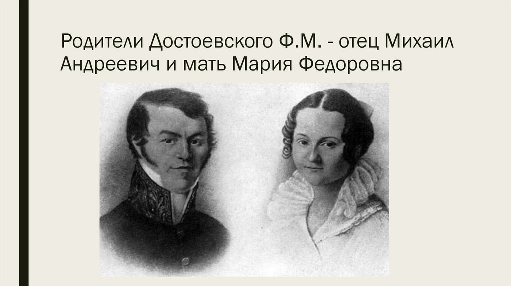 3. Родители Достоевского Ф.М. - отец Михаил Андреевич и мать Мария Федоровна