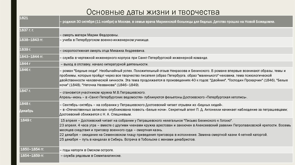 – Сентябрь–октябрь – на собрании у Петрашевского Достоевский читает отрывки из «Бедных людей».