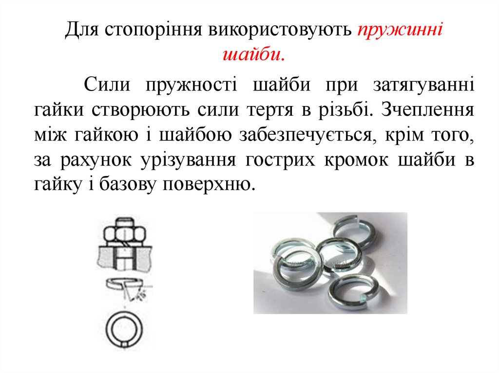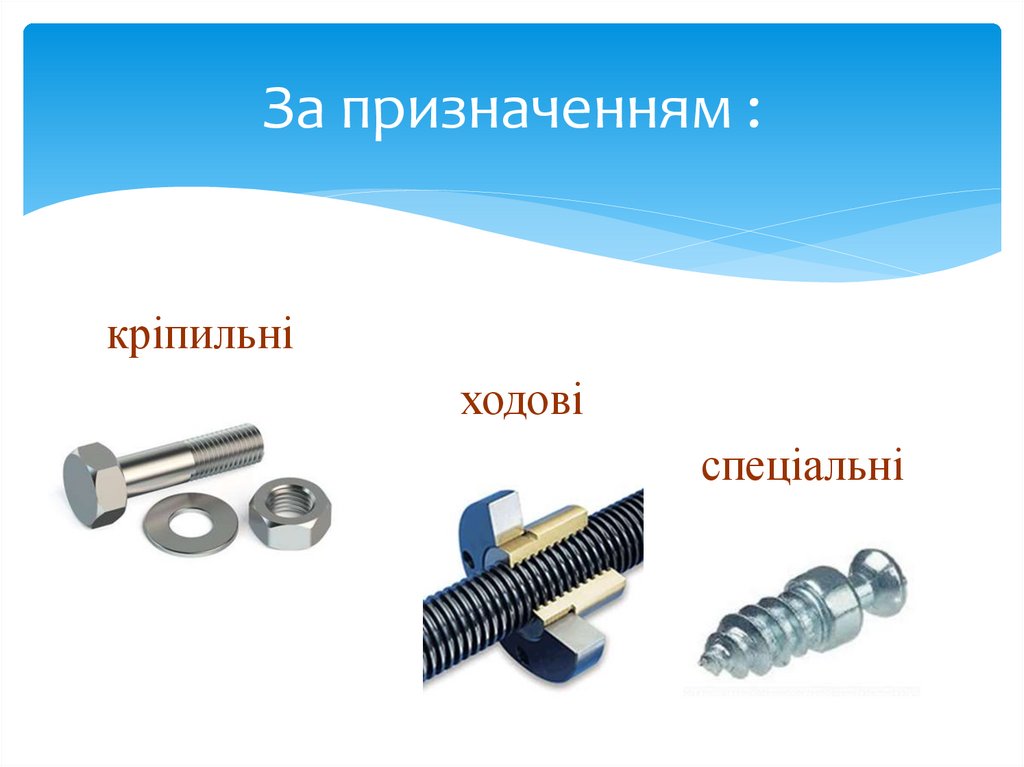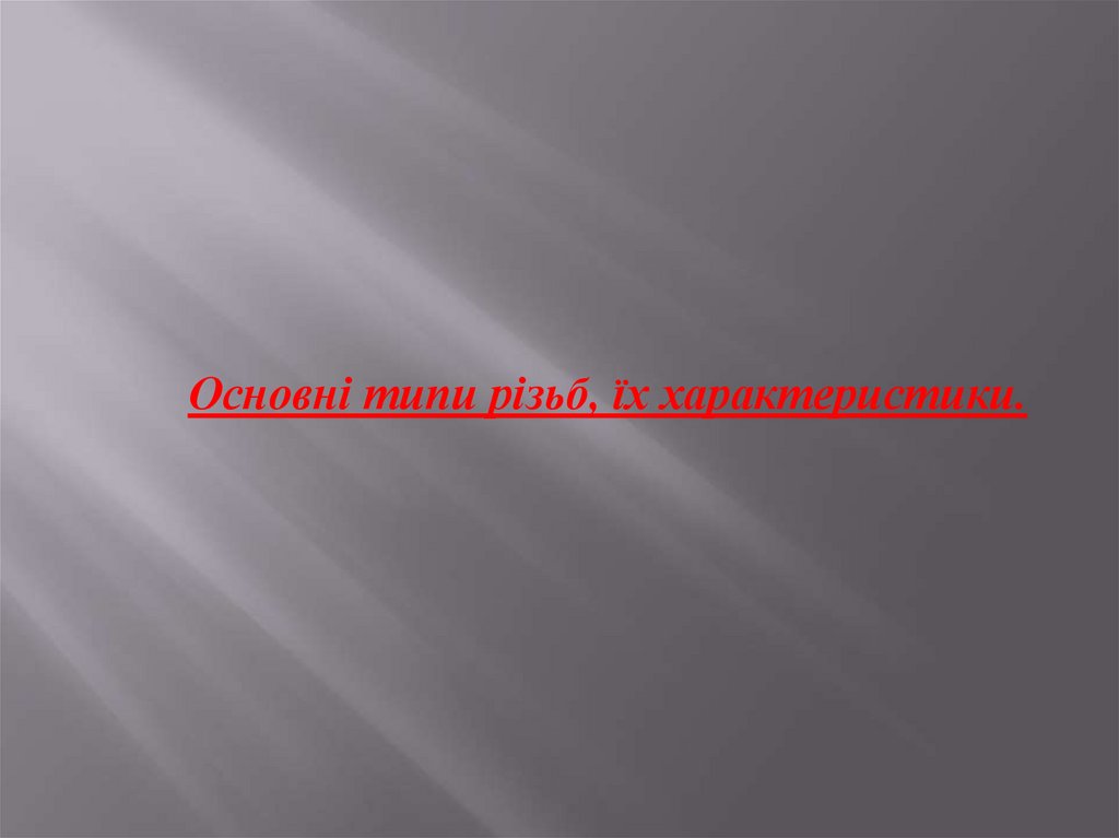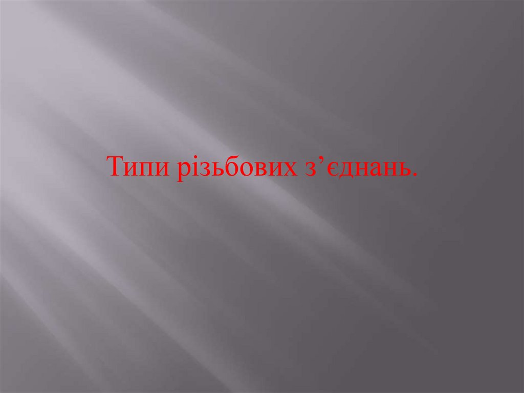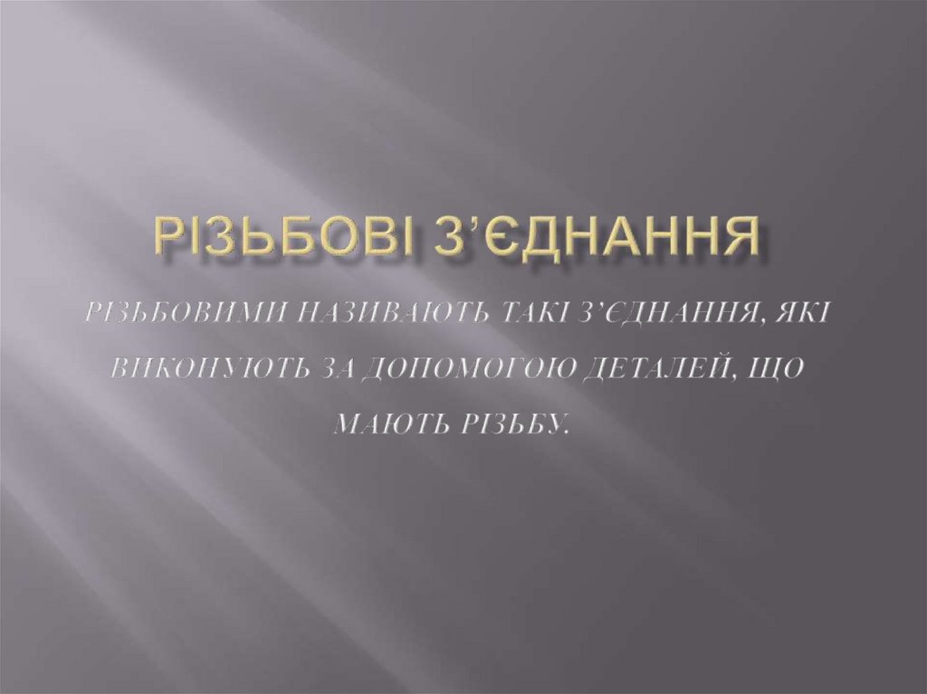 1. Різьбові з’єднання Різьбовими називають такі з’єднання, які виконують за допомогою деталей, що мають різьбу.
