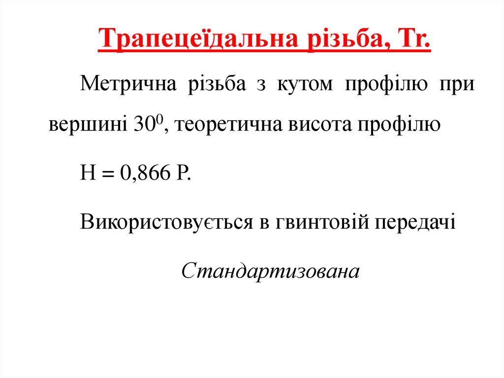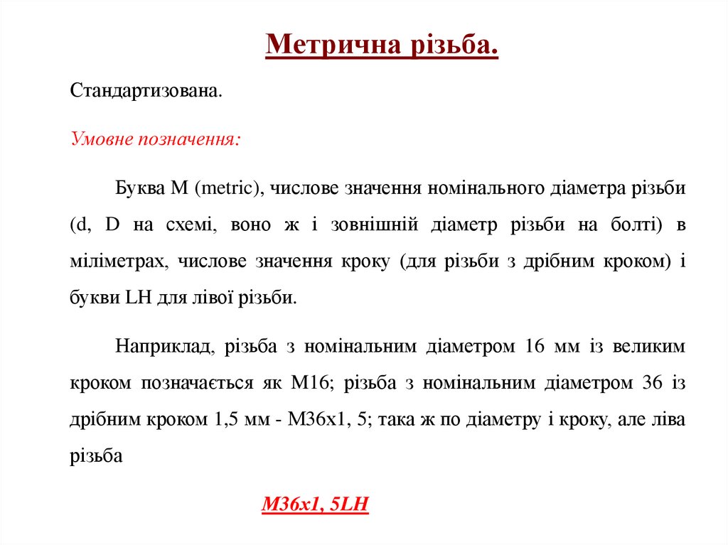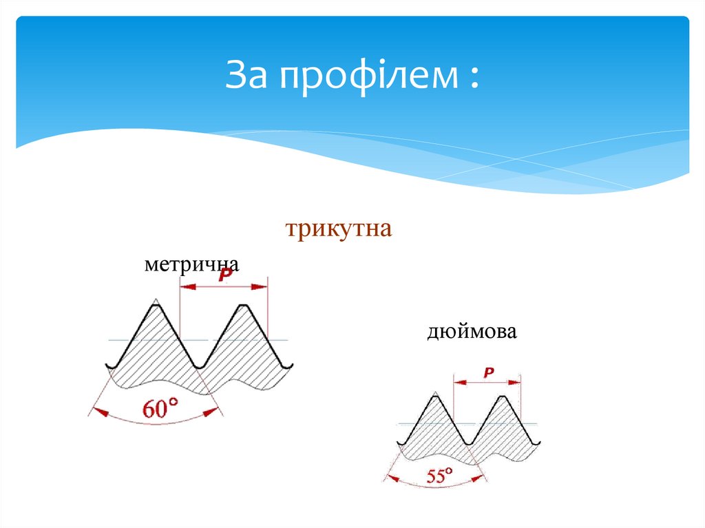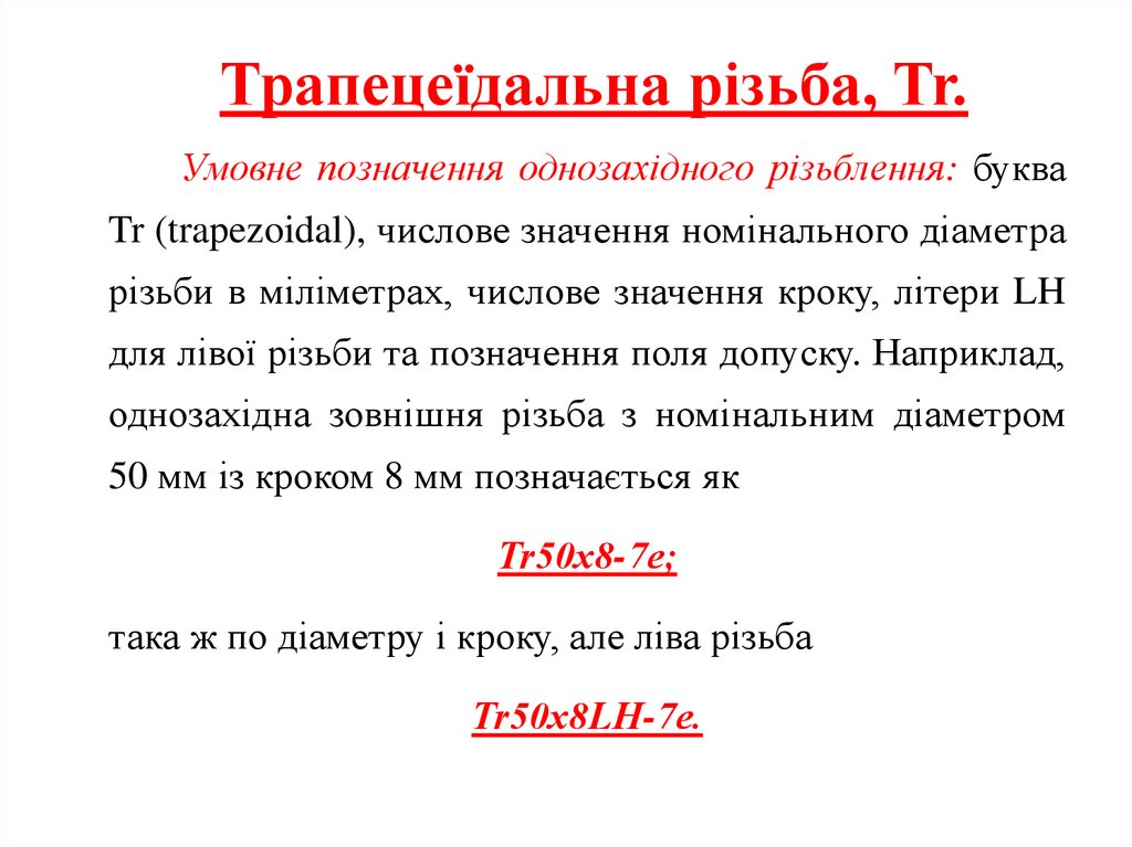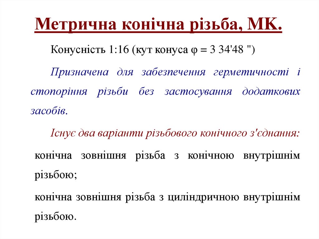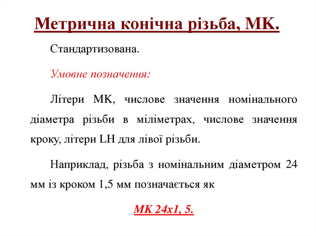М ― метрична; К ― конічна; Тр ― трапецеїдальна);