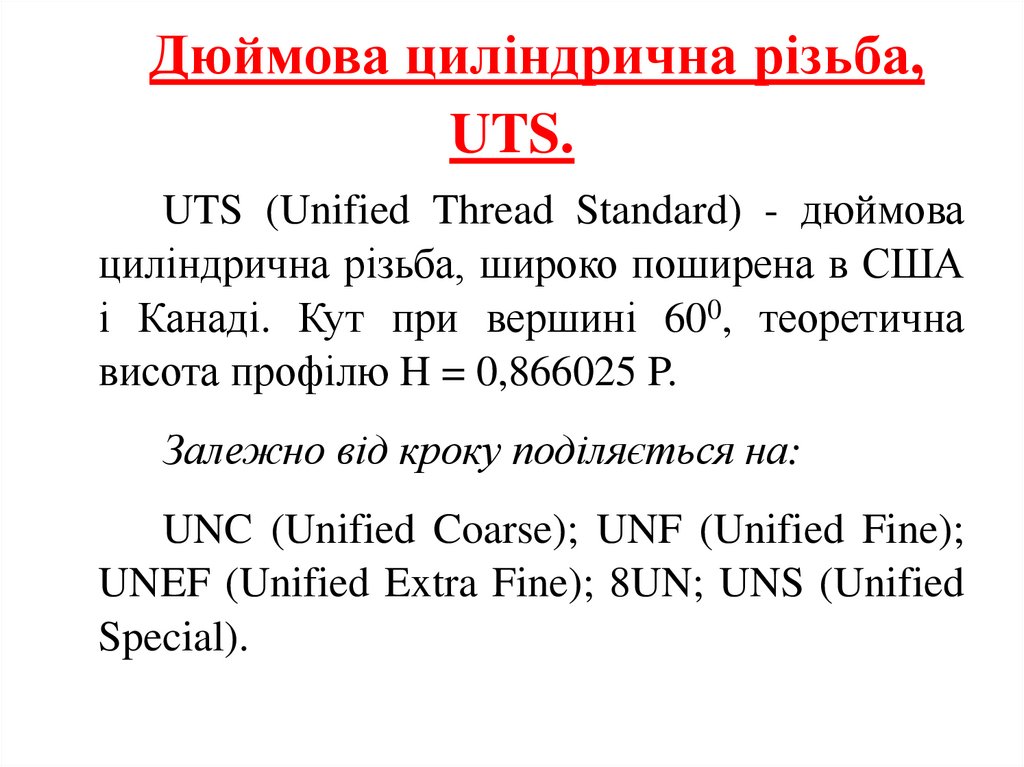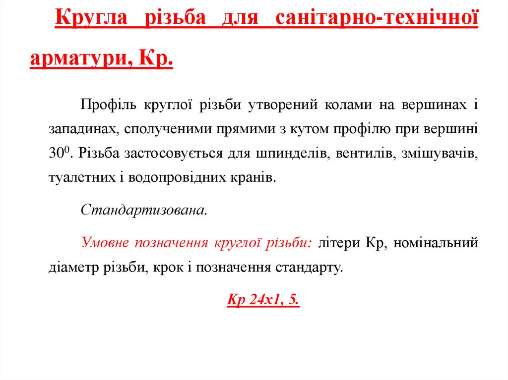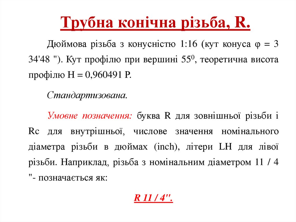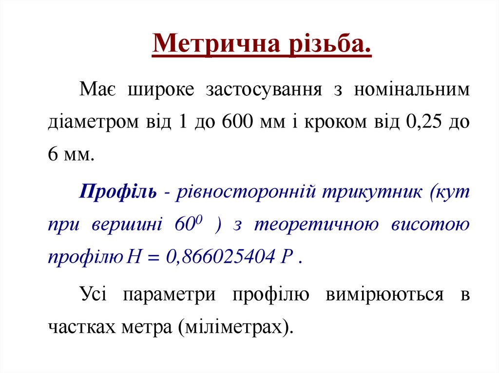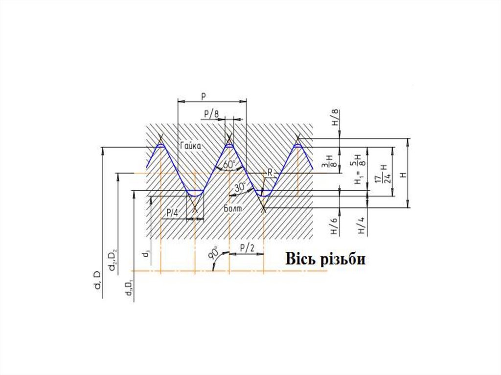 М ― метрична; К ― конічна; Тр ― трапецеїдальна);