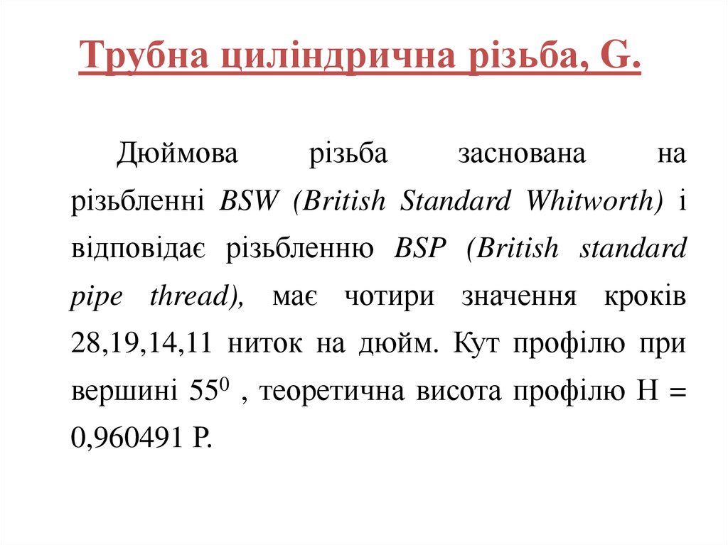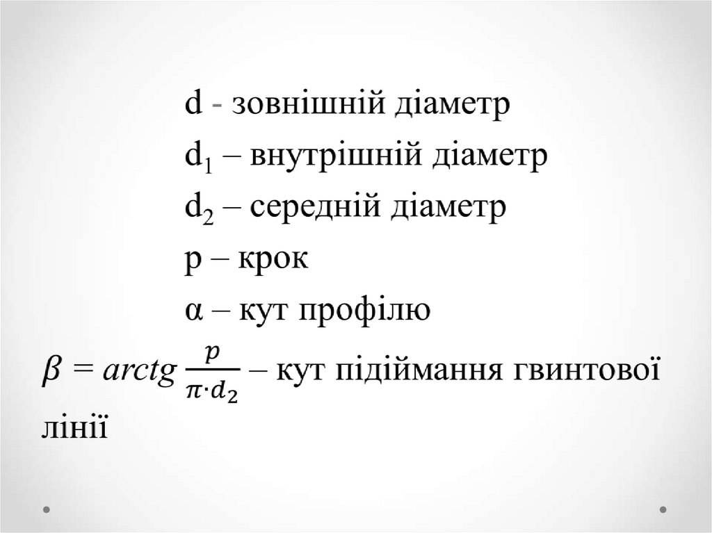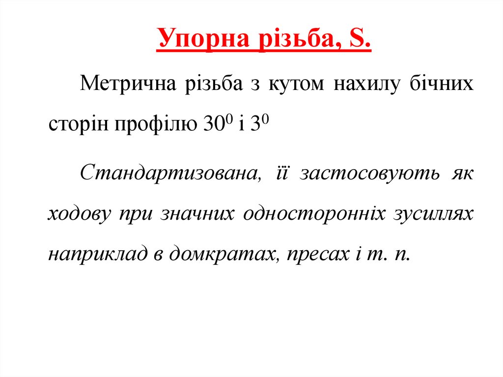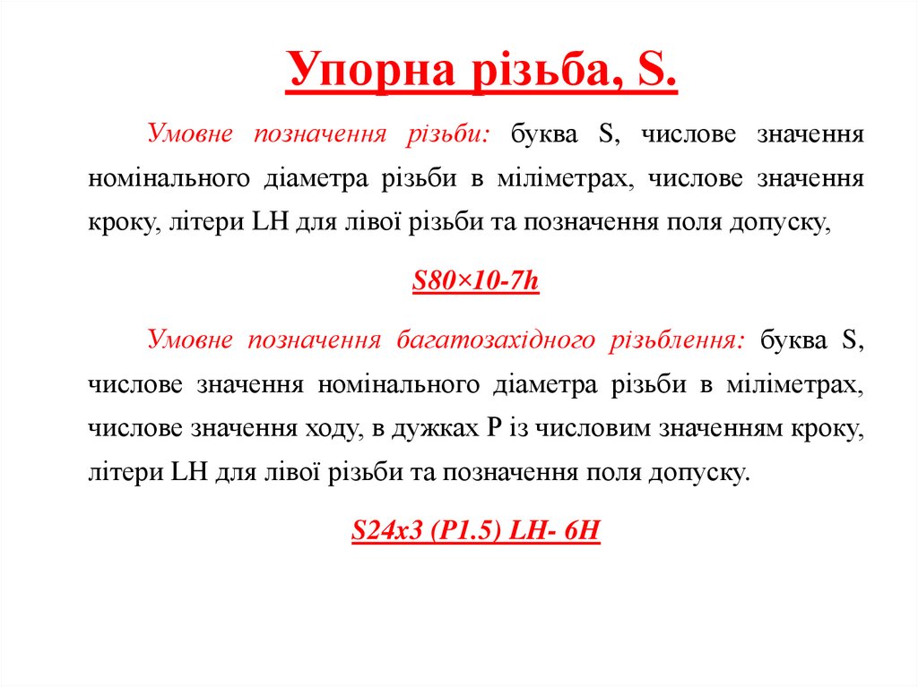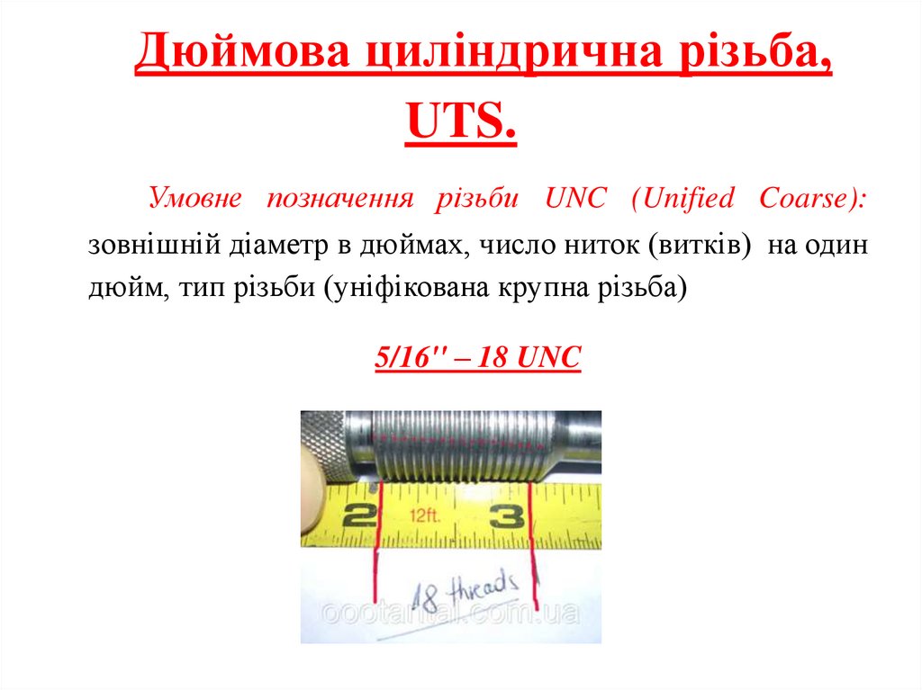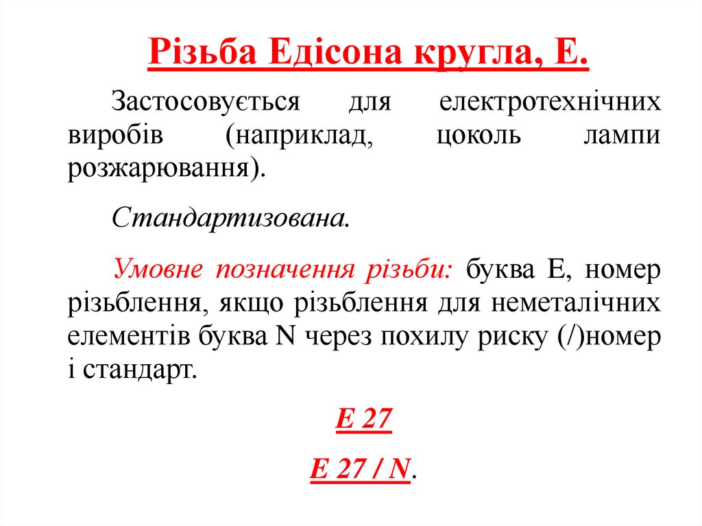 М ― метрична; К ― конічна; Тр ― трапецеїдальна);