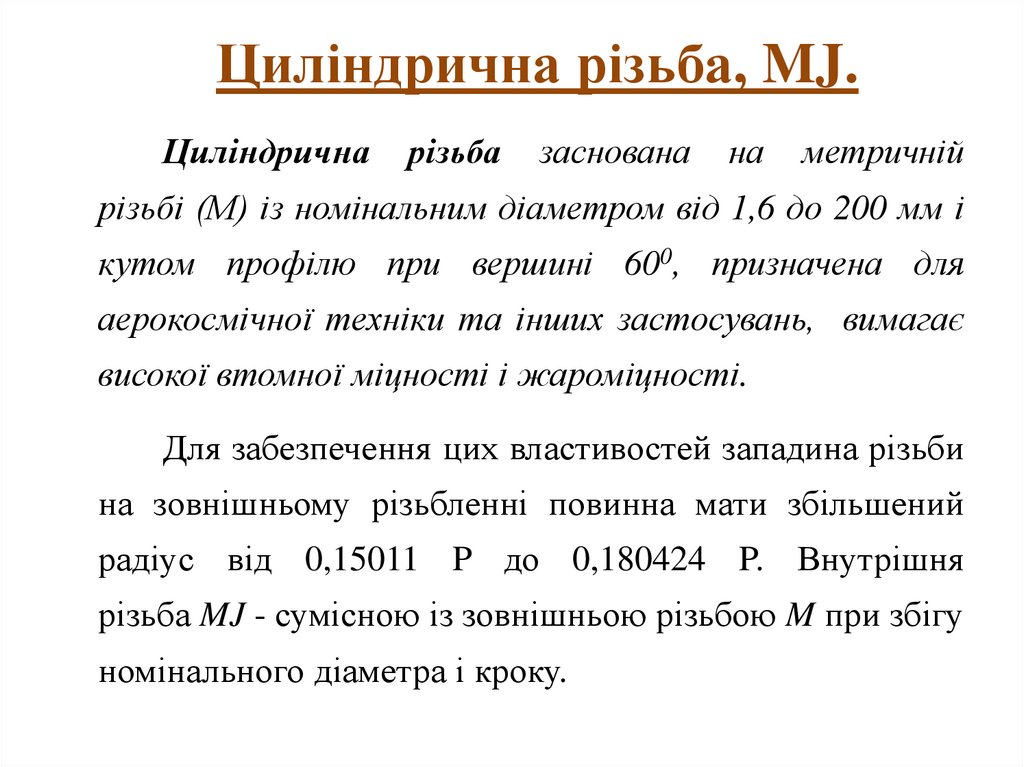 різьба MJ - сумісною із зовнішньою різьбою M при збігу