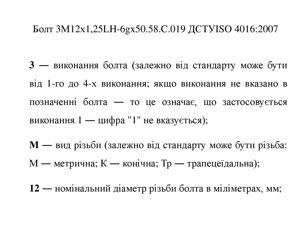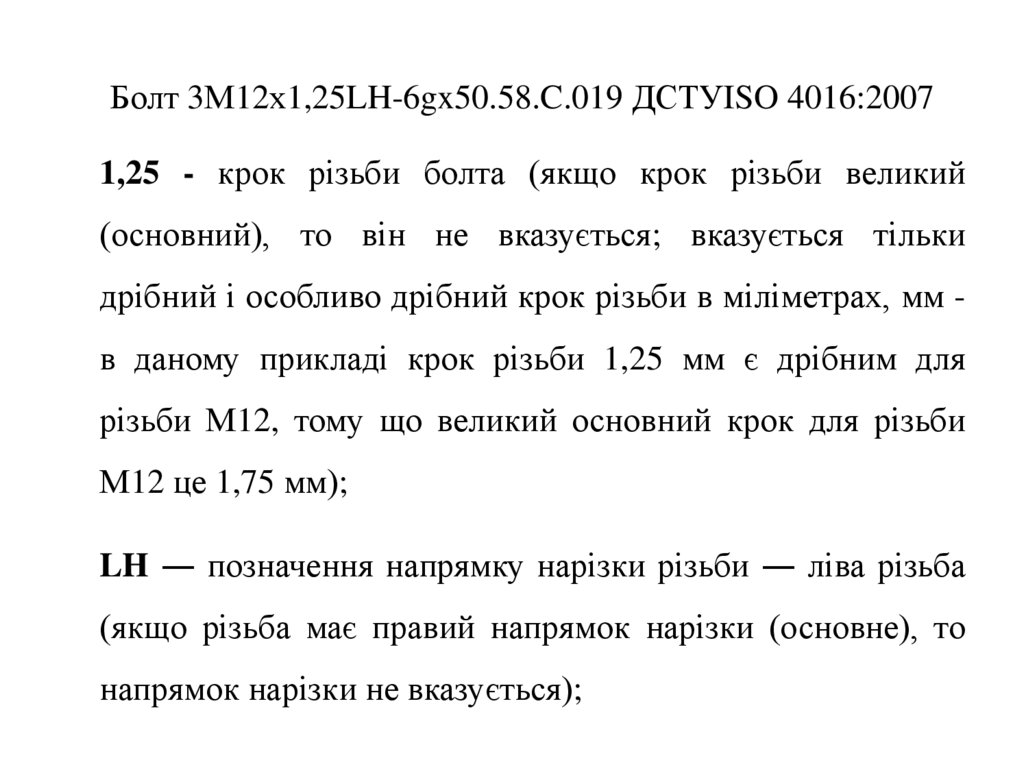 1,25 - крок різьби болта (якщо крок різьби великий(основний), то він не вказується; вказується тільки