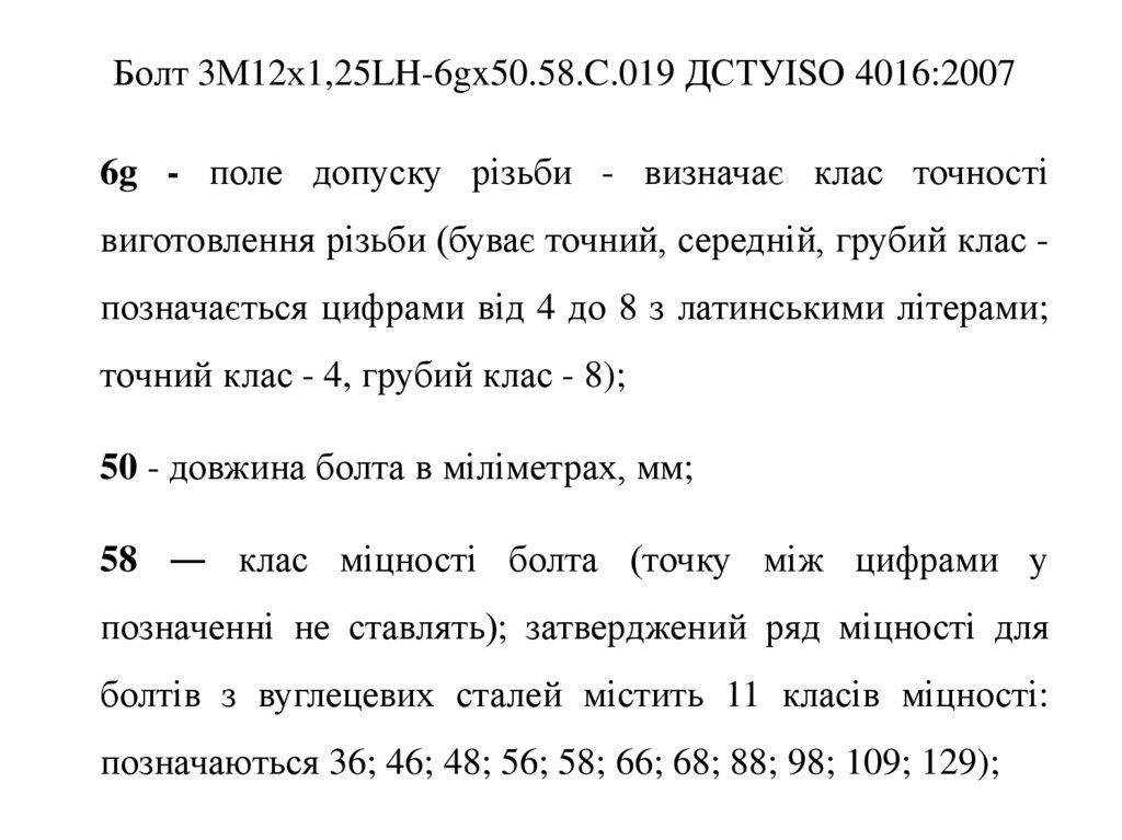 53. Болт 3М12х1,25LH-6gx50.58.C.019 ДСТУISO 4016:2007