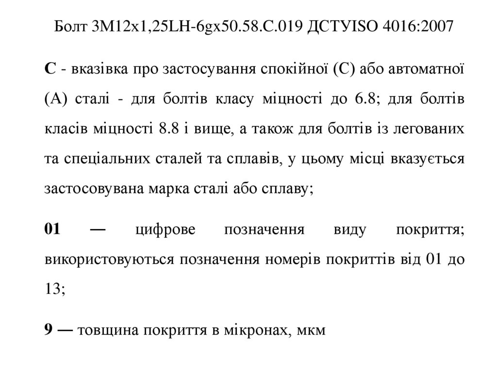 С - вказівка про застосування спокійної (С) або автоматної(А) сталі - для болтів класу міцності до 6.8; для болтів