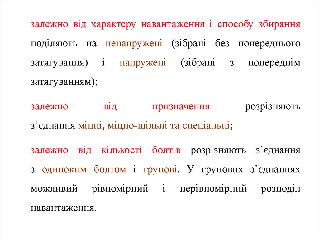 залежно від характеру навантаження і способу збиранняподіляють на ненапружені (зібрані без попереднього