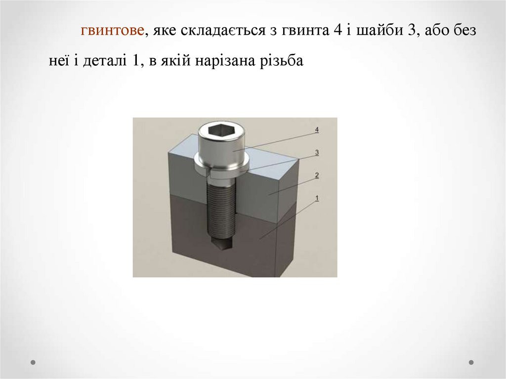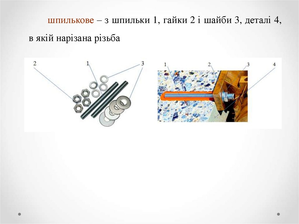 шпилькове – з шпильки 1, гайки 2 і шайби 3, деталі 4,в якій нарізана різьба