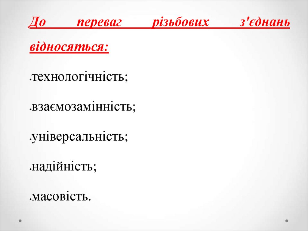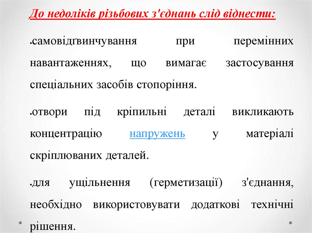 До недоліків різьбових з'єднань слід віднести:самовідґвинчування