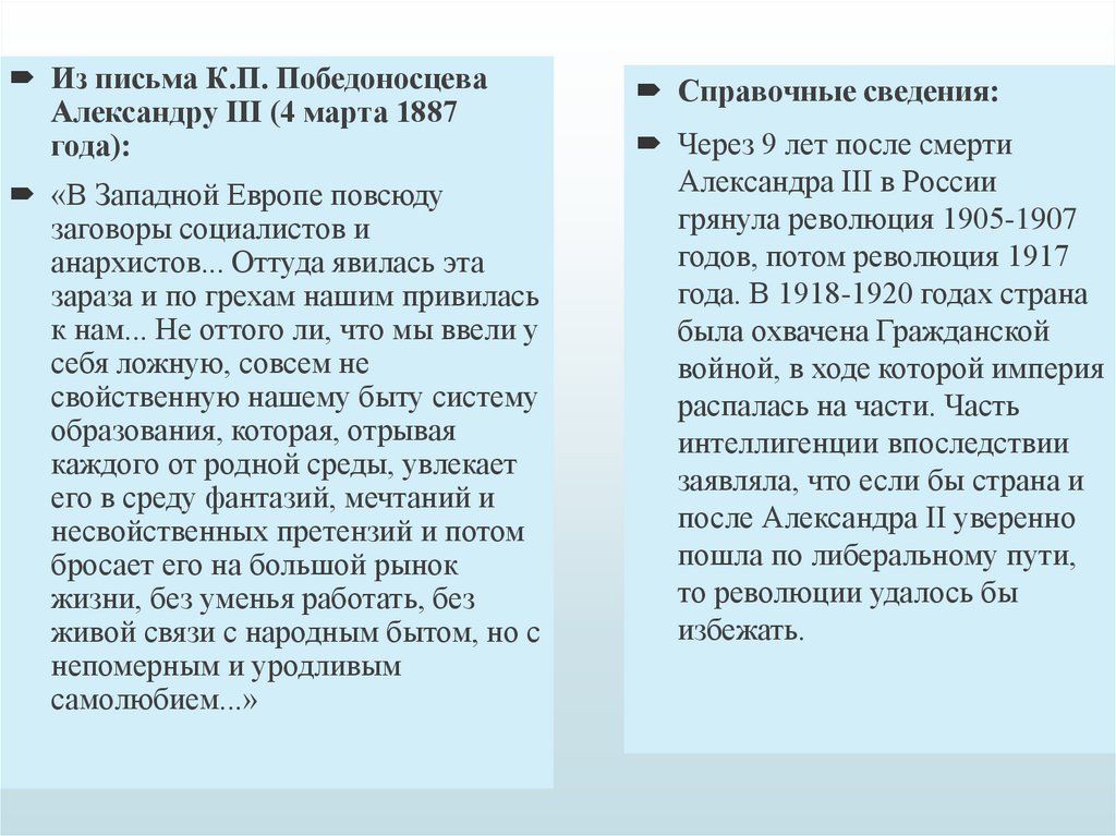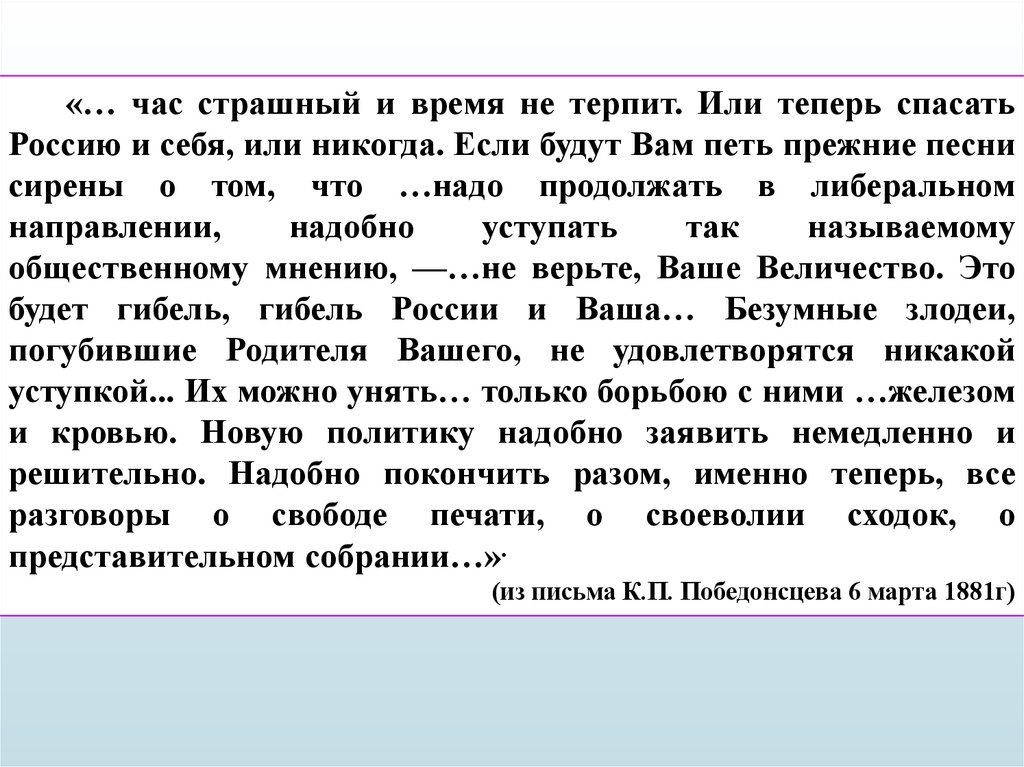 Из письма К.П. ПобедоносцеваАлександру III (4 марта 1887