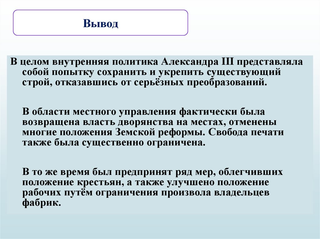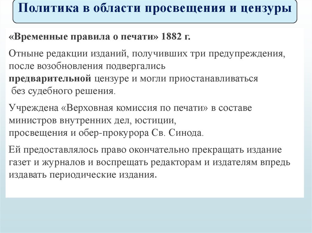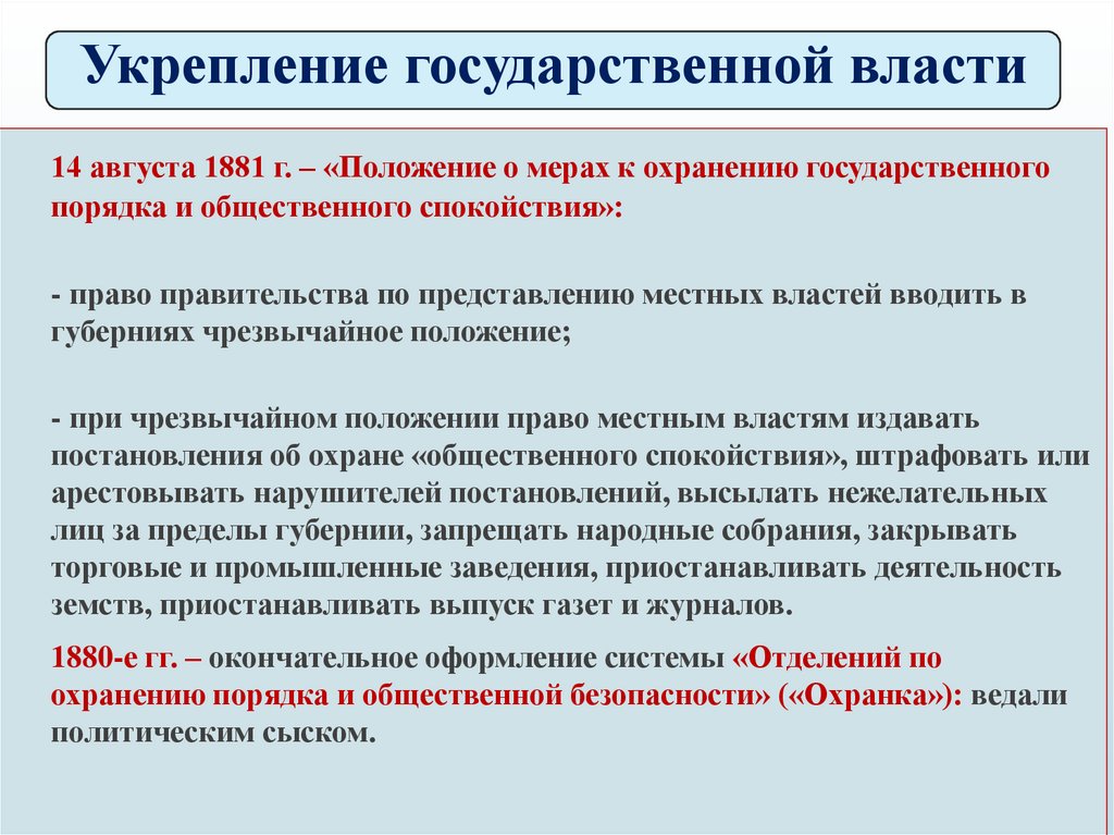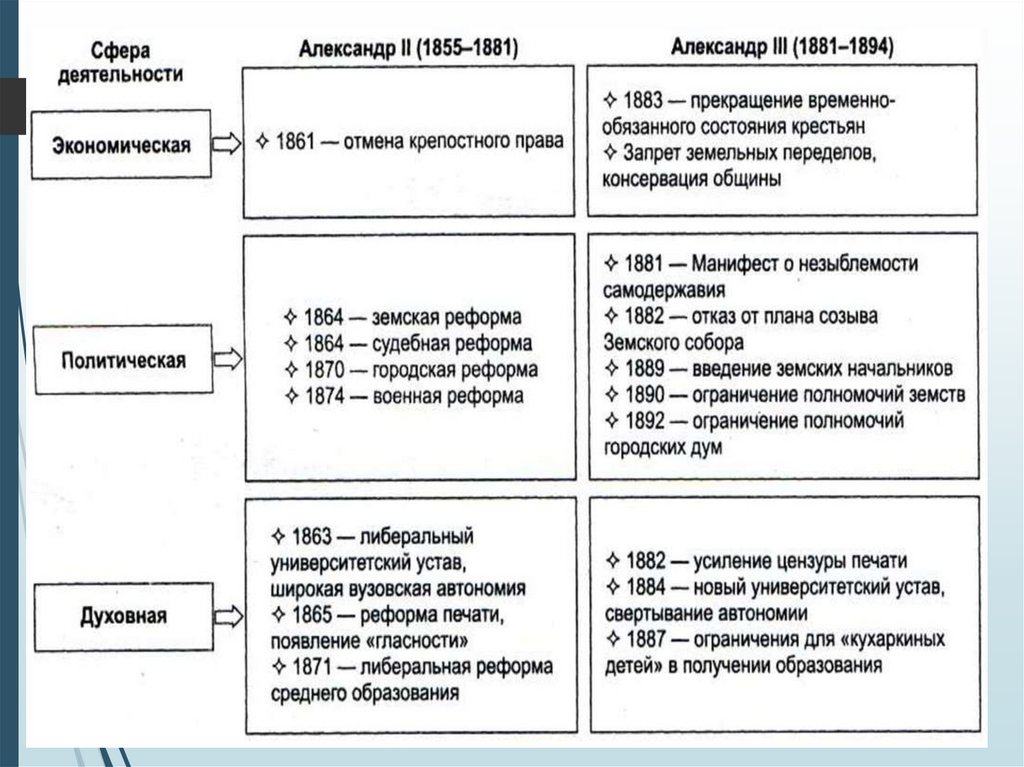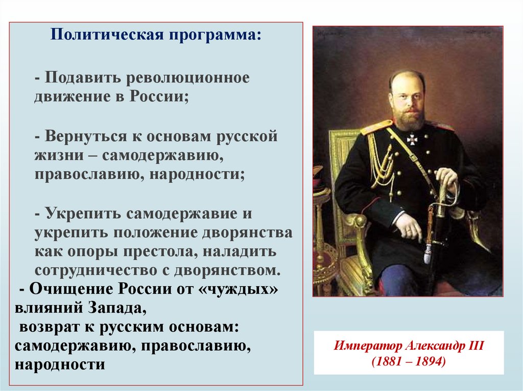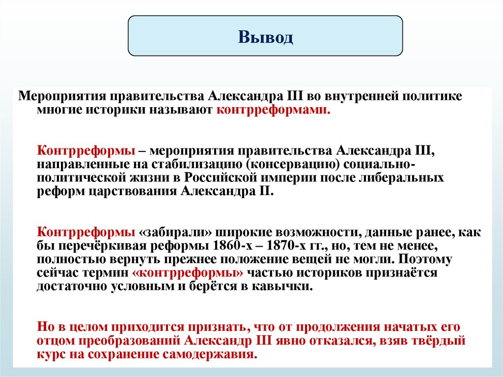 направленные на стабилизацию (консервацию) социальнополитической жизни в Российской империи после либеральных