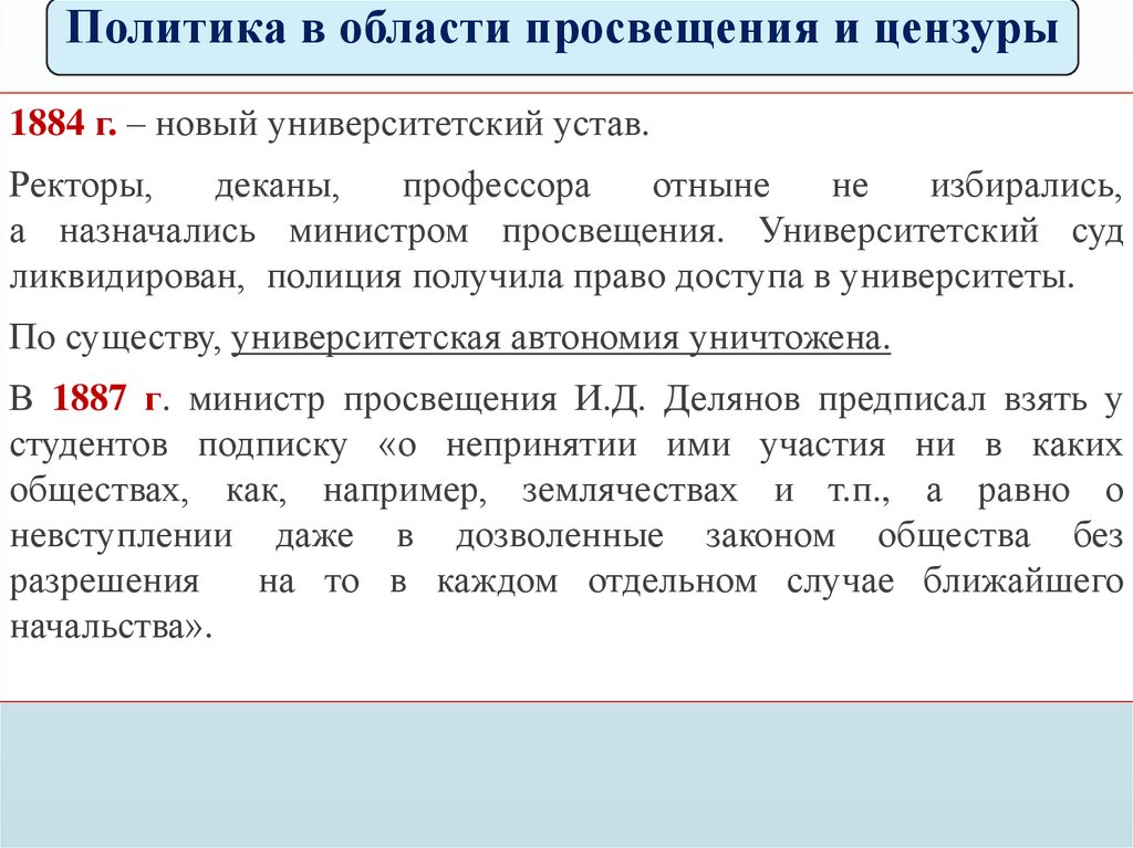 бы перечёркивая реформы 1860-х – 1870-х гг., но, тем не менее,