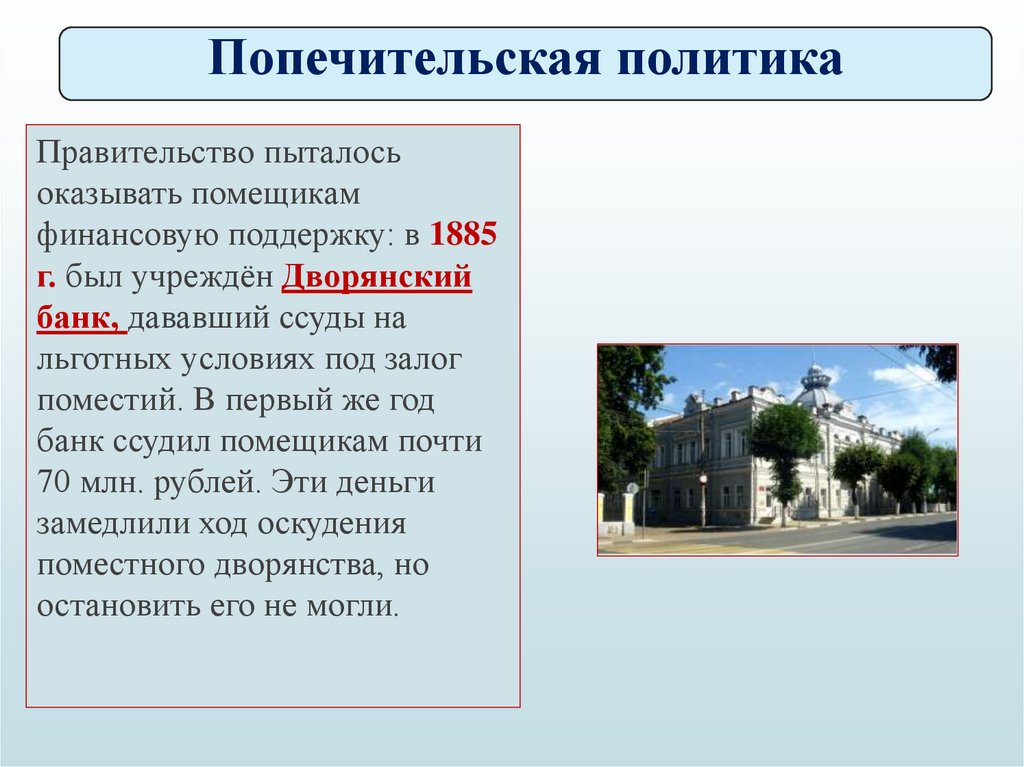 1882 г. – создание Крестьянского банка: предоставление ссуд для покупки