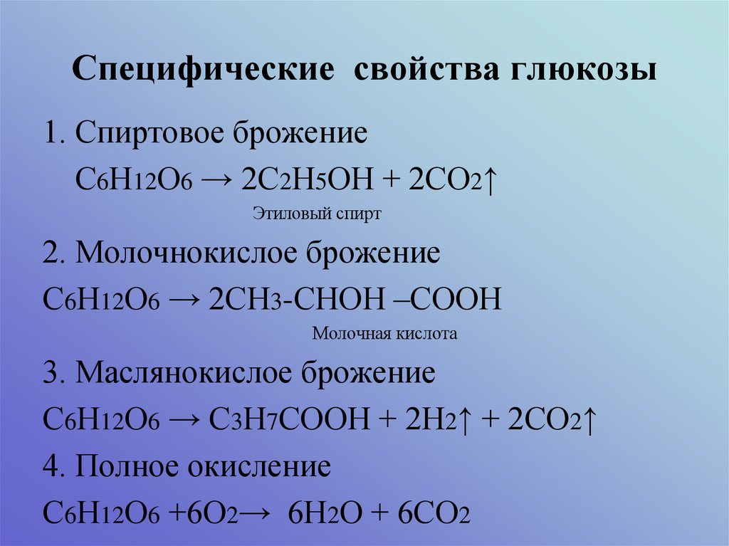 С6Н12О6 → С3Н7СООН + 2Н2↑ + 2СО2↑