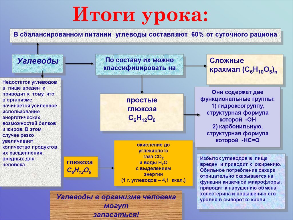 В сбалансированном питании углеводы составляют 60% от суточного рационаПо составу их можно