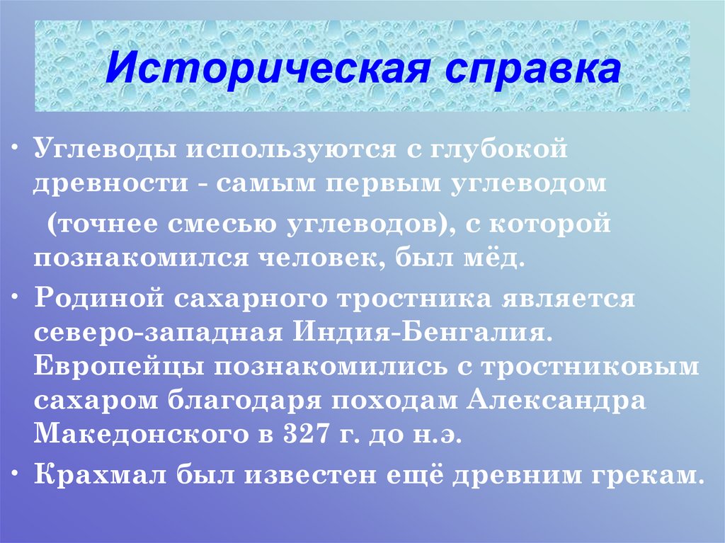 • Углеводы используются с глубокойдревности - самым первым углеводом