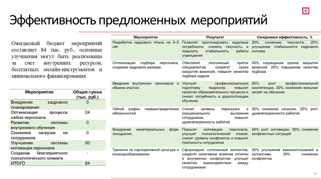 Эффективность предложенных мероприятийОжидаемый бюджет мероприятий