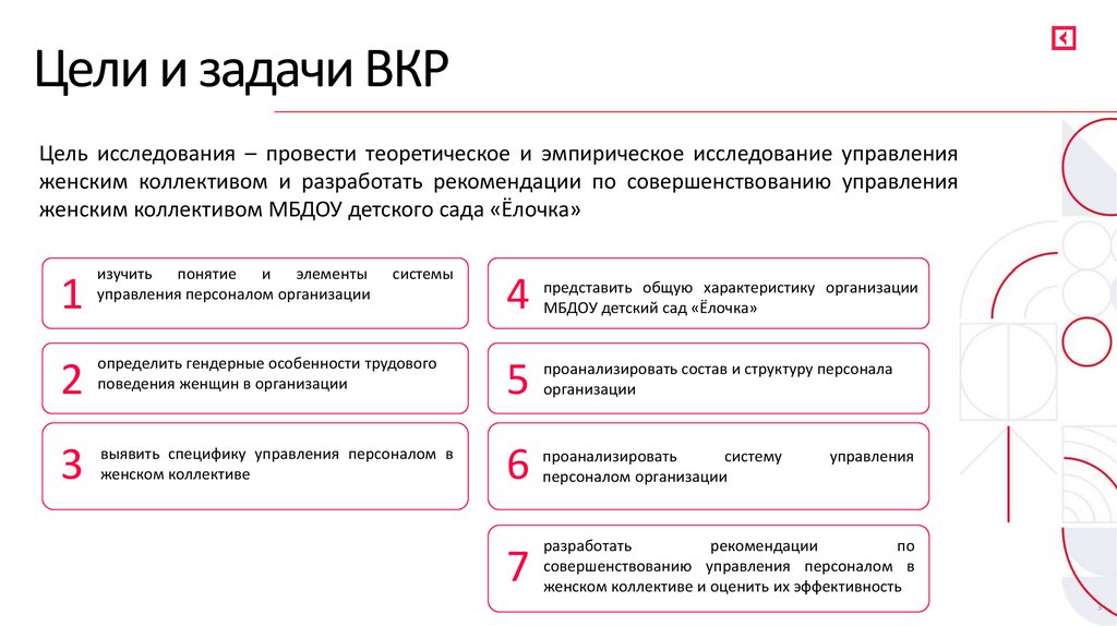Цели и задачи ВКРЦель исследования – провести теоретическое и эмпирическое исследование управления