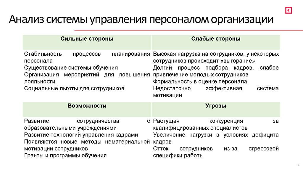 потребности, снизить текучесть и улучшение стабильности кадрового