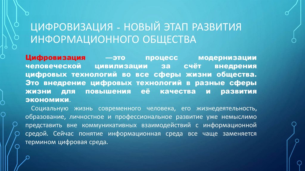 ЦИФРОВИЗАЦИЯ - НОВЫЙ ЭТАП РАЗВИТИЯИНФОРМАЦИОННОГО ОБЩЕСТВА