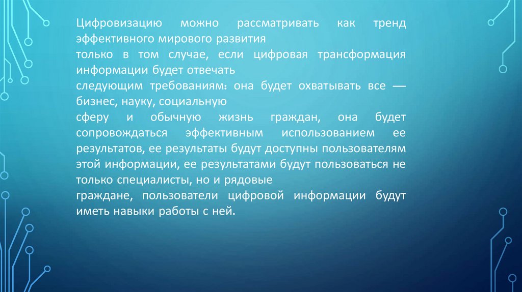 составляющих общего прогресса цивилизации. Конца у цифровизации быть не может,