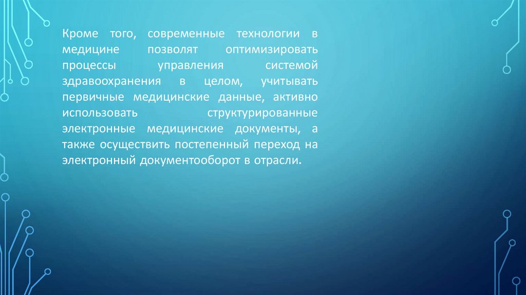 совершенствуются телемедицинские технологии, «облачные» решения, формируется