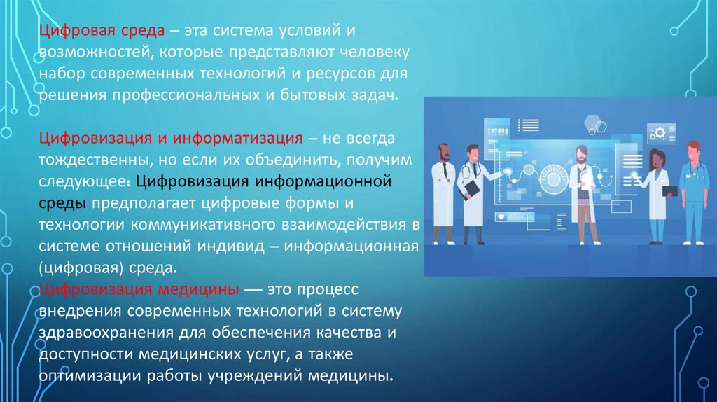 Цифровая среда – эта система условий ивозможностей, которые представляют человеку