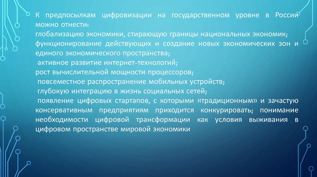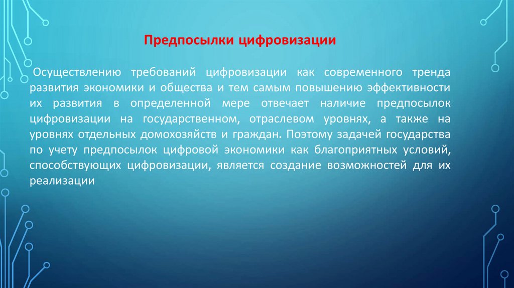 Предпосылки цифровизацииОсуществлению требований цифровизации как современного тренда