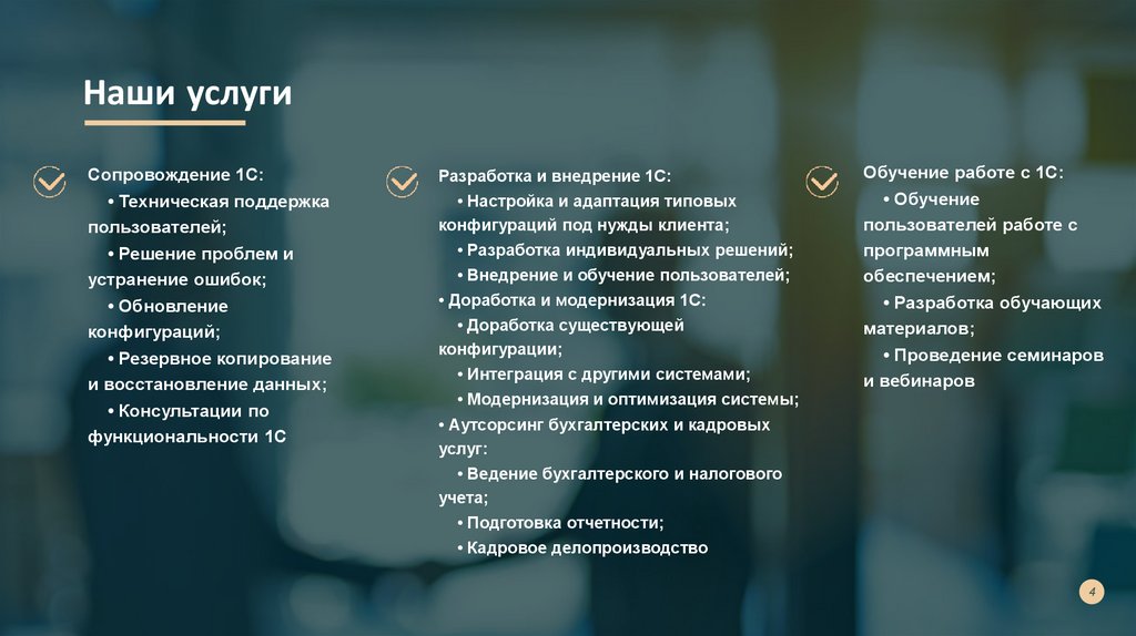 сопровождением и использованием 1С, что позволяет клиентам экономить время и