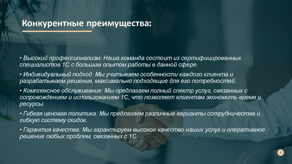 Конкурентные преимущества:• Высокий профессионализм: Наша команда состоит из сертифицированных