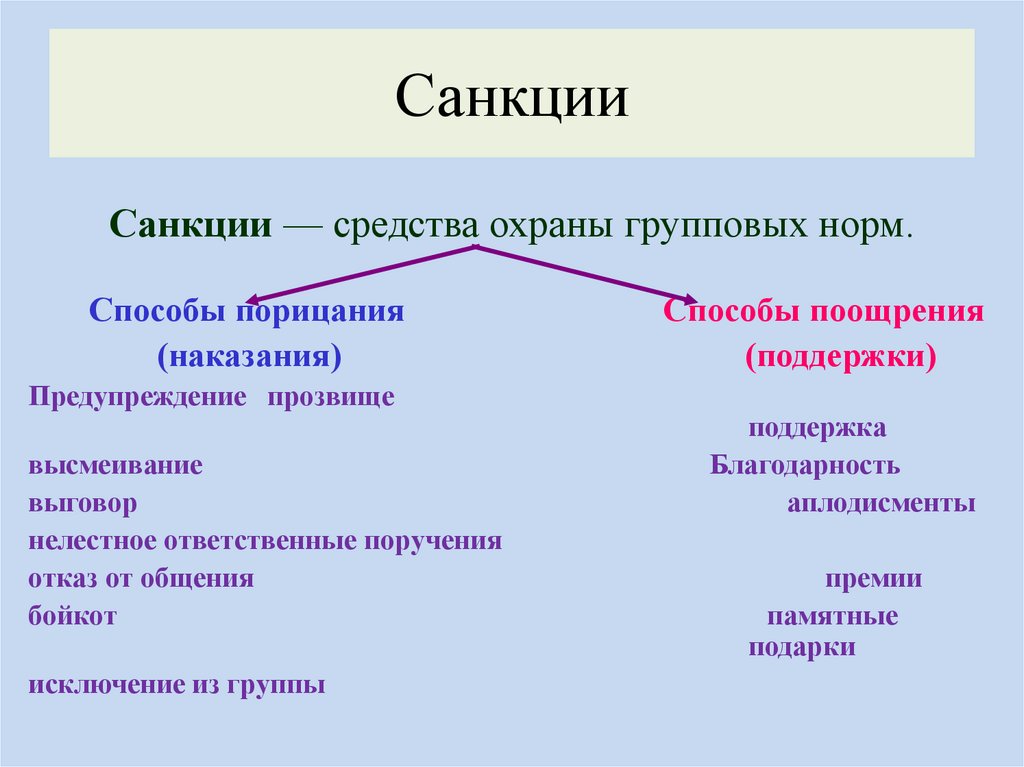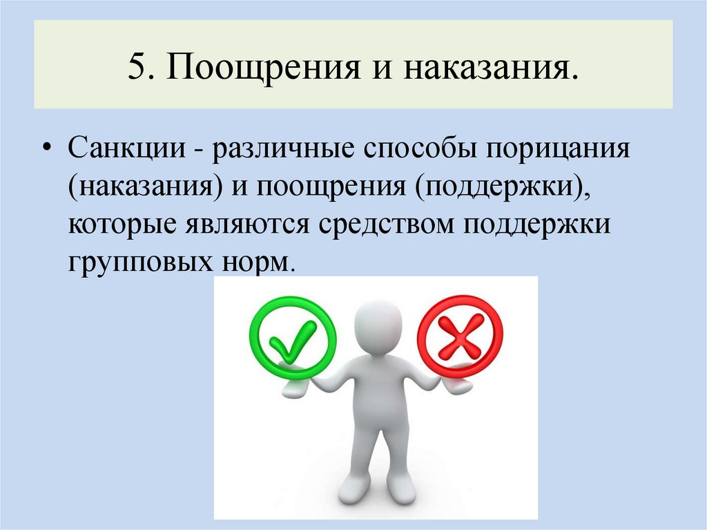 5. Поощрения и наказания.• Санкции - различные способы порицания