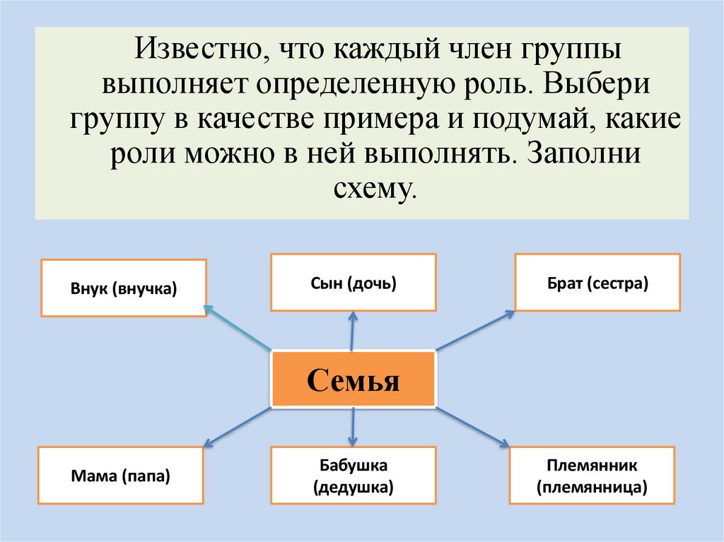 Известно, что каждый член группывыполняет определенную роль. Выбери