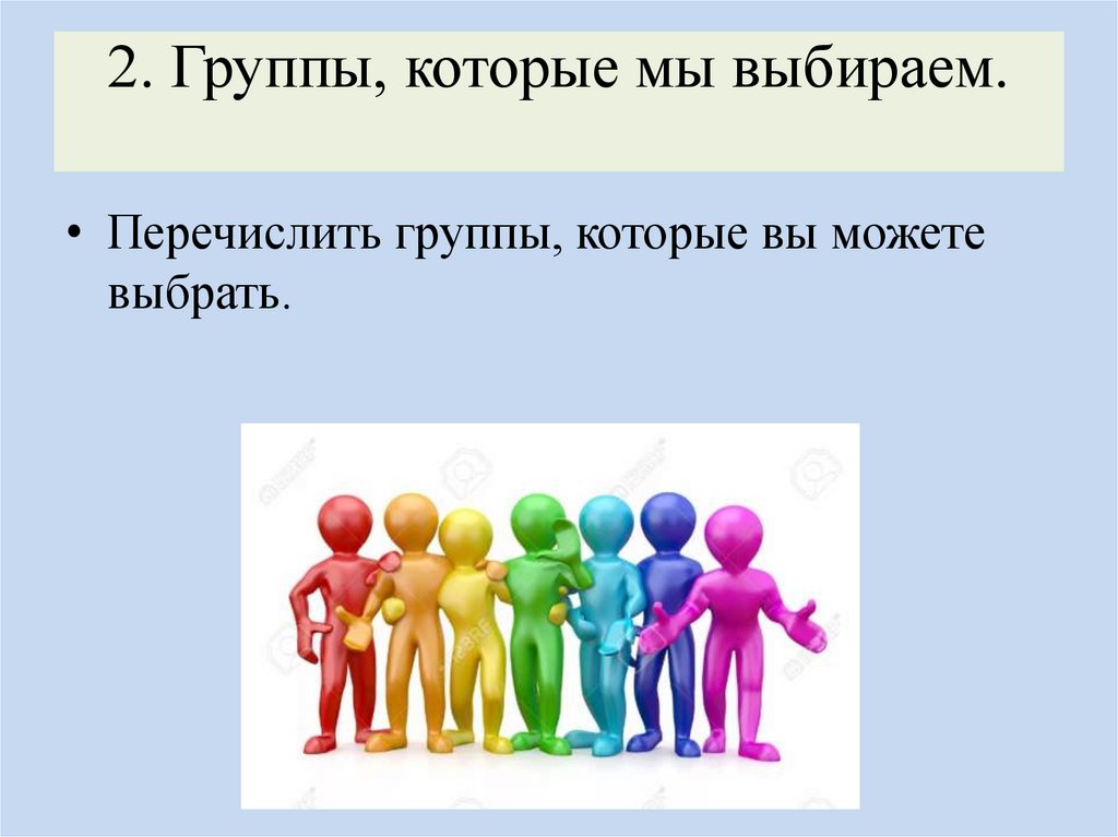 2. Группы, которые мы выбираем.• Перечислить группы, которые вы можете